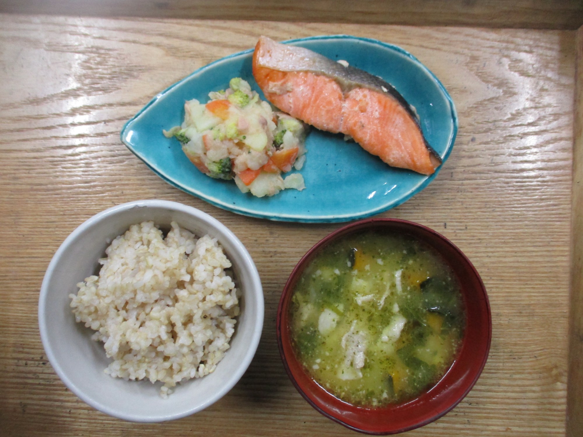 1枚目:【普通食:以上児】サケの醤油ソテー・ポテトサラダ・コーンスープ
