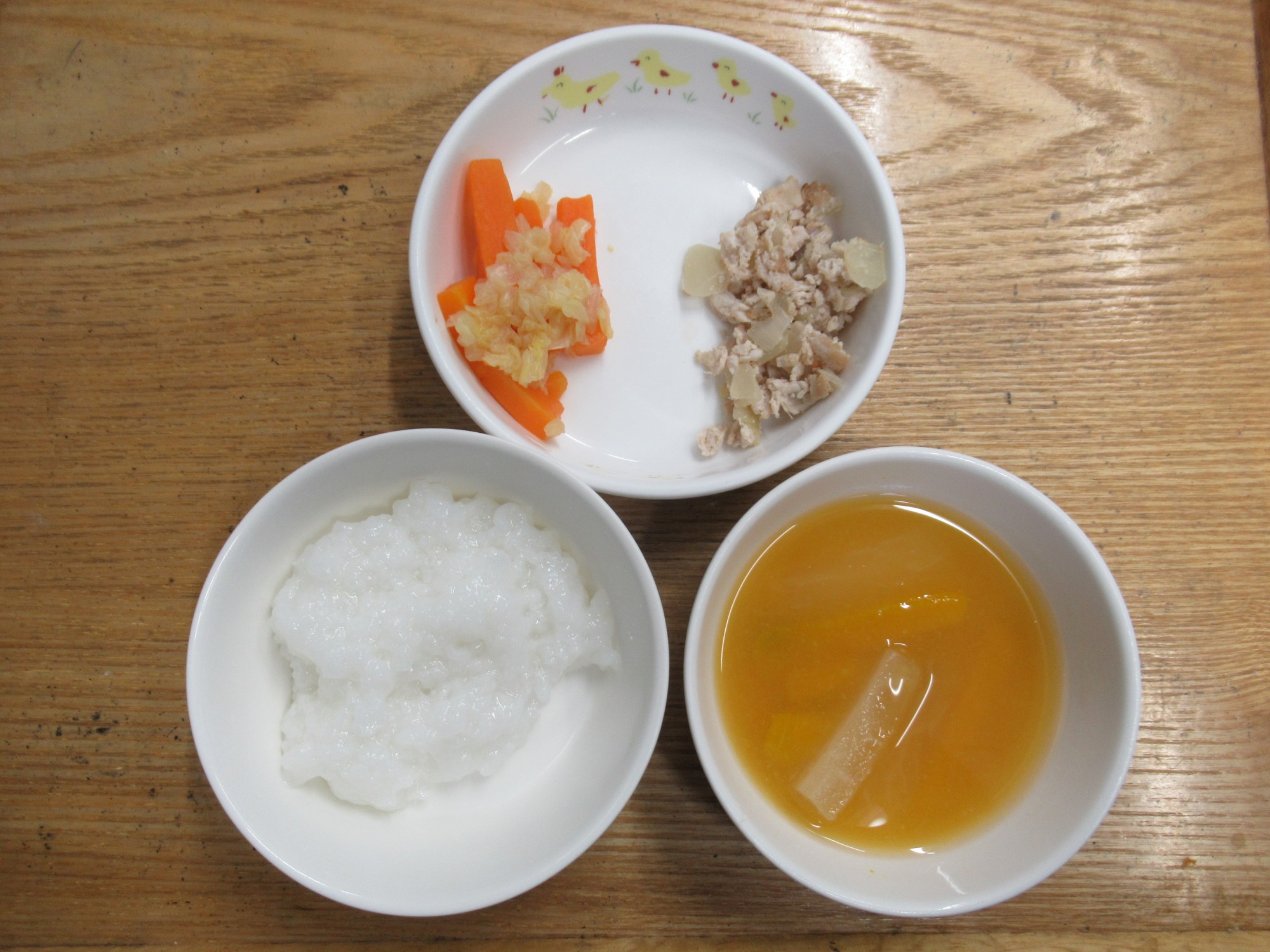 4枚目:【離乳食】豚肉の塩焼き・人参の和え物・大根のみそ汁