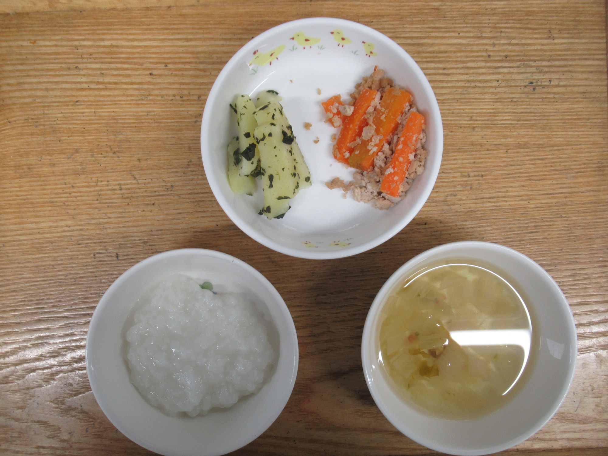 4枚目:【離乳食】豚肉の焼き物・青菜の和え物・白菜のスープ