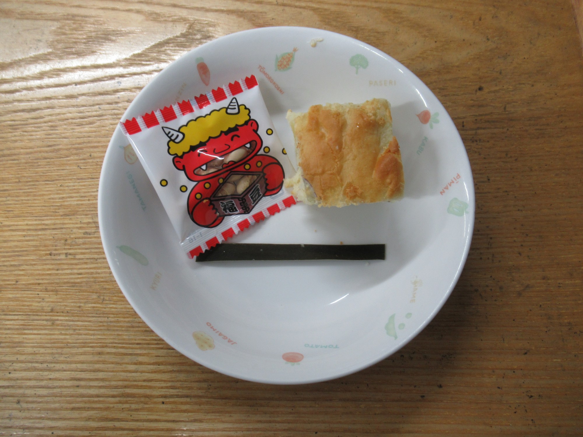 今日は節分のメニューでした。いわしのつみれみそ汁を食べて1年の健康と無病息災を願い、いただきました。