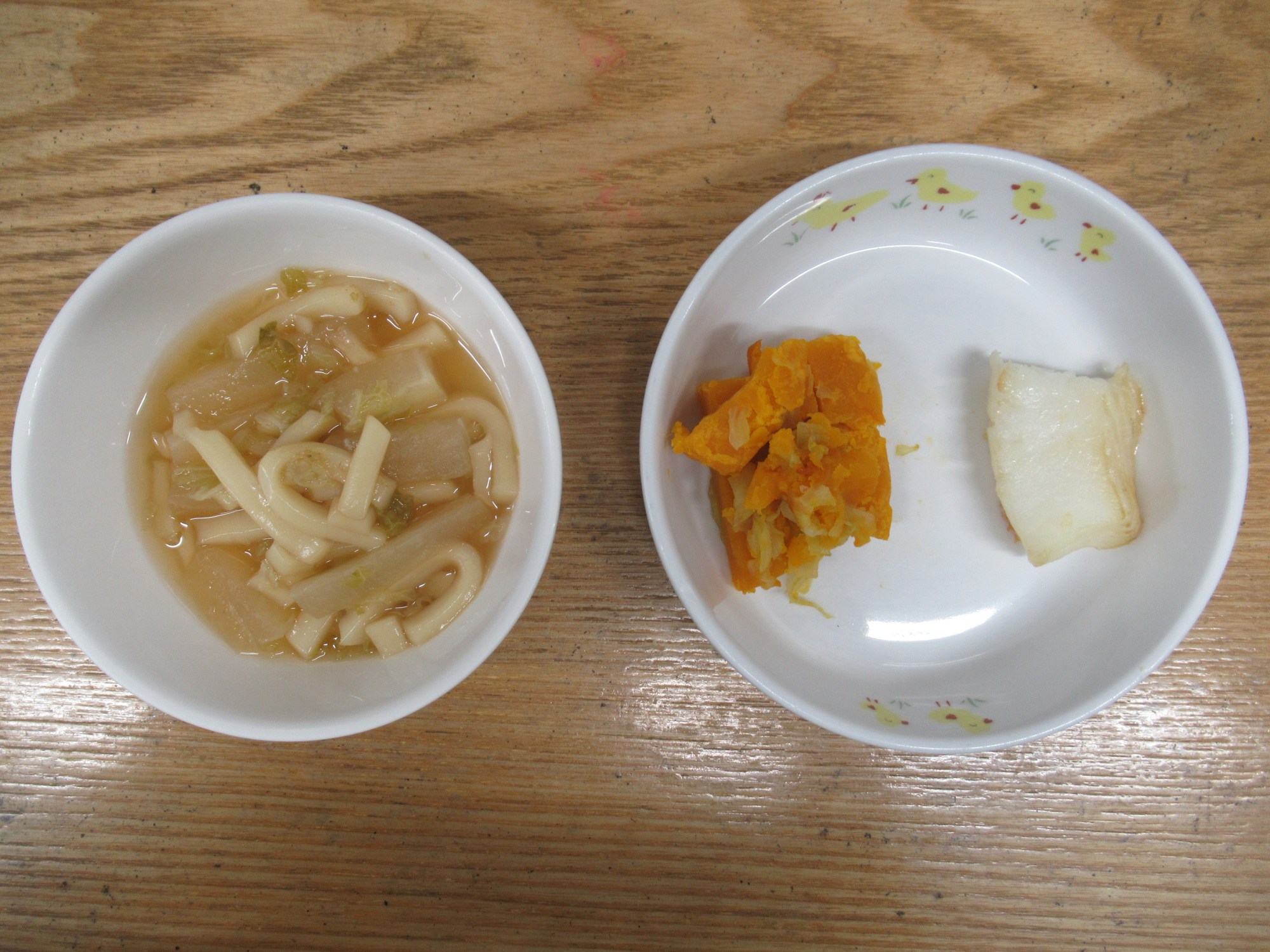 4枚目:【離乳食】醤油うどん・カレイの醤油焼き・南瓜のサラダ