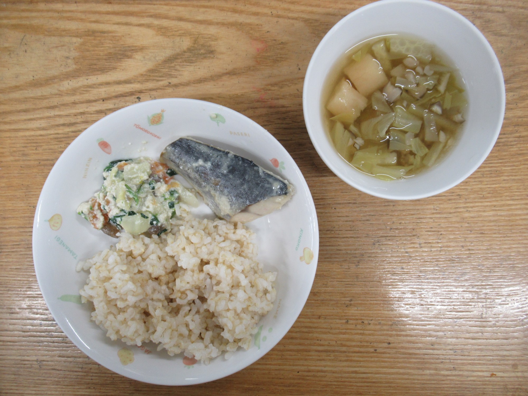 1枚目:【普通食:未満児】サワラの西京焼き・白菜の白和え・とろろ昆布のすまし汁