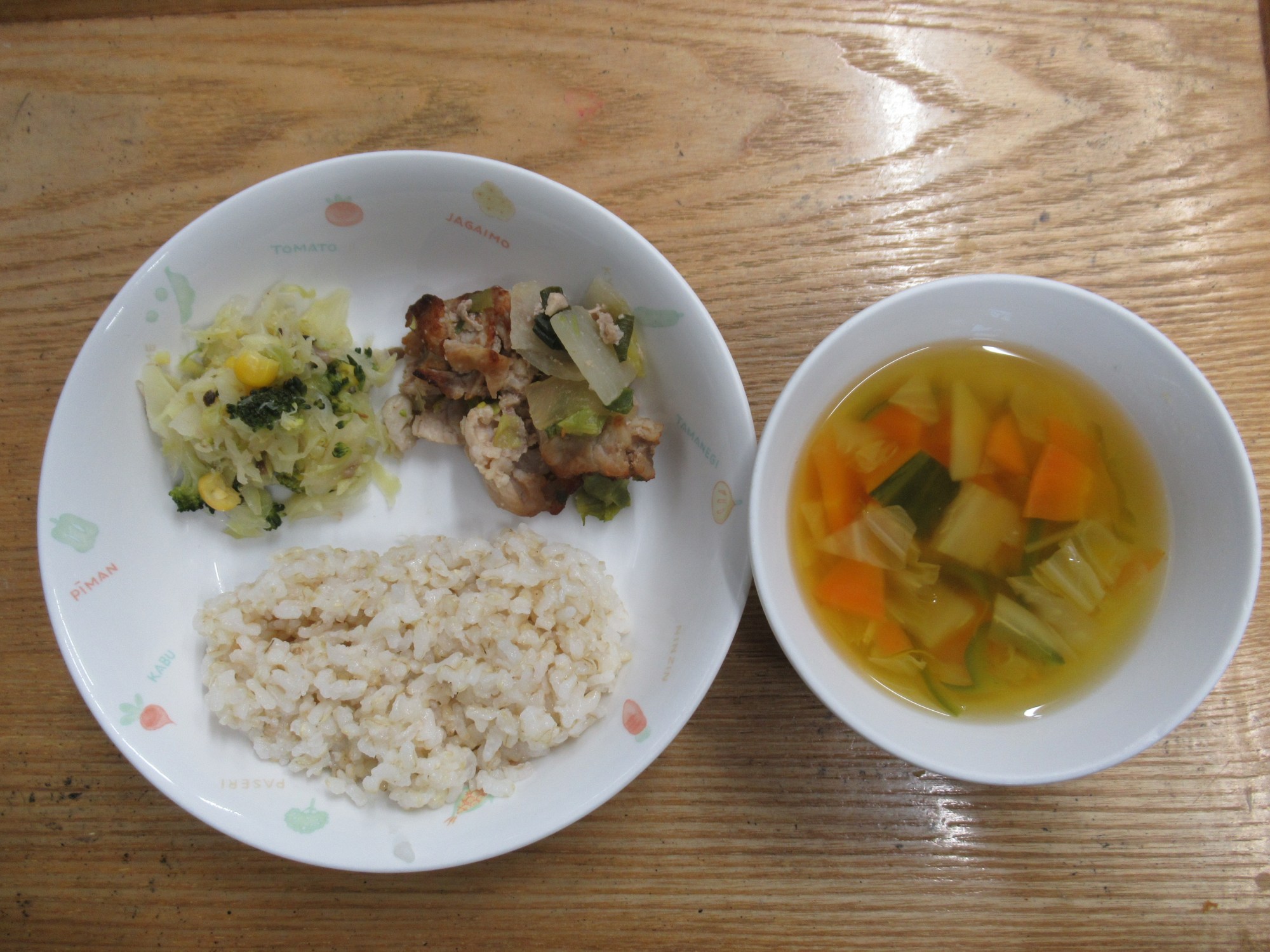 1枚目:【普通食:以上児】豚肉の醤油焼き・酢みそ和え・お吸い物