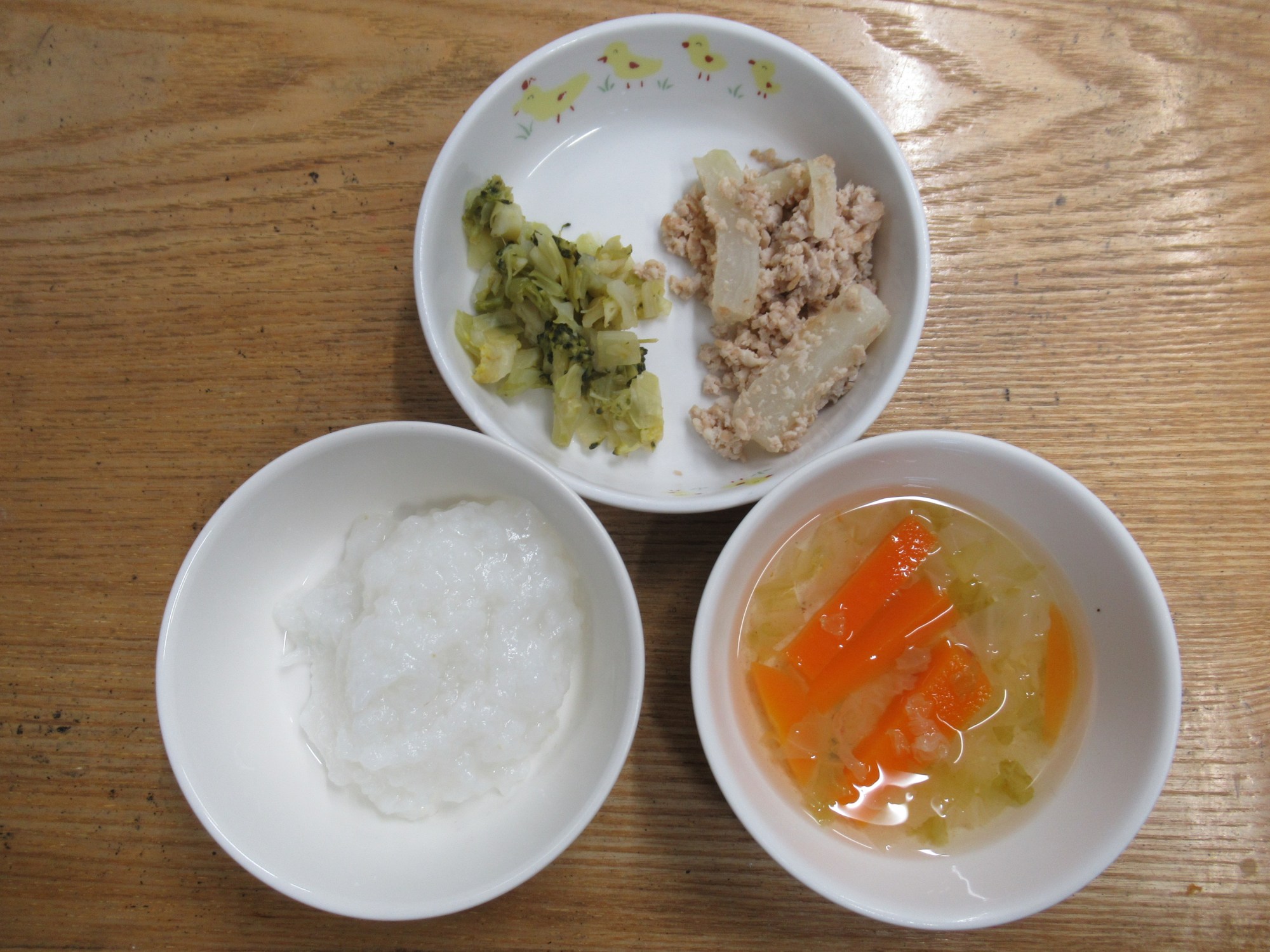 4枚目:【離乳食】豚肉の醤油焼き・キャベツのみそ和え・お吸い物