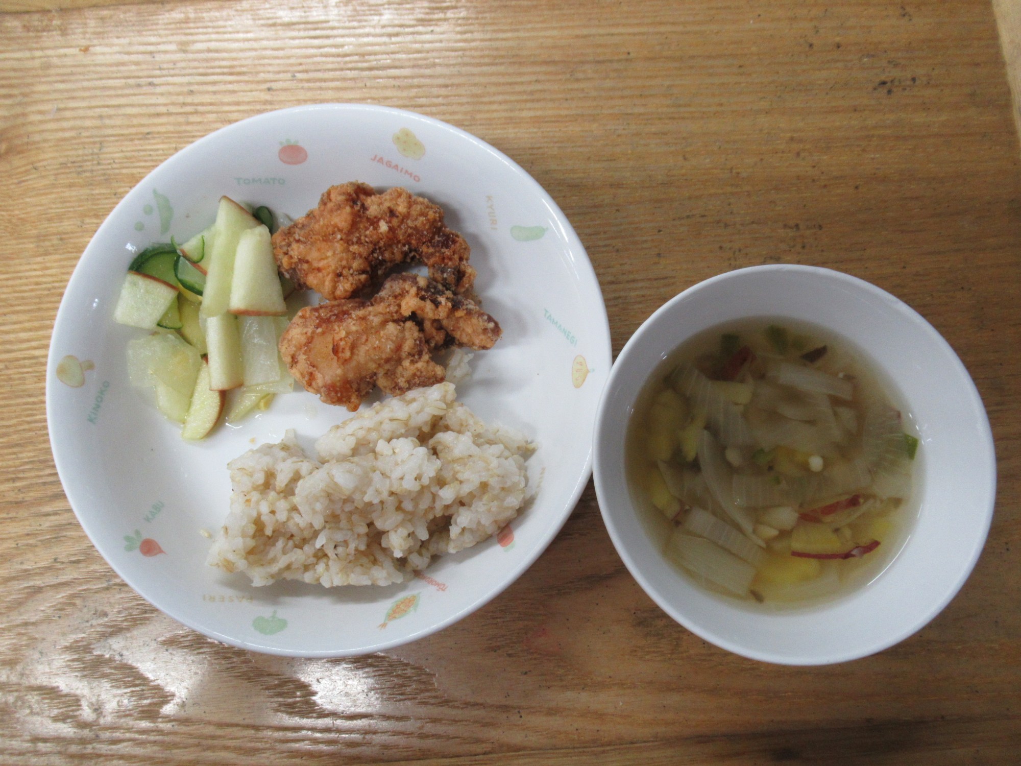 1枚目:【普通食:以上児】鶏肉の唐揚げ・和え物・すまし汁