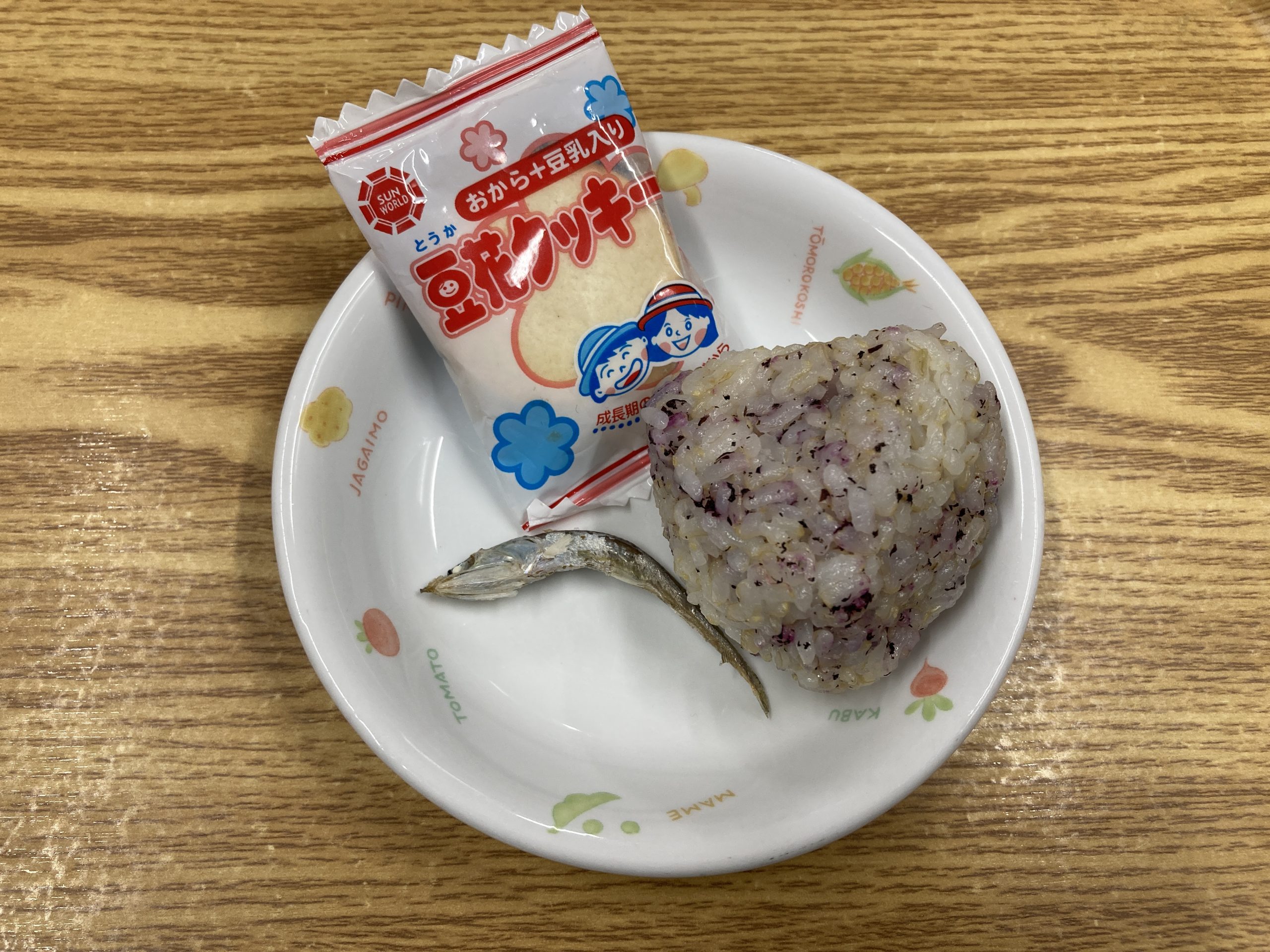 今日のごはんとおやつを紹介することで園での食育について知ってもらう