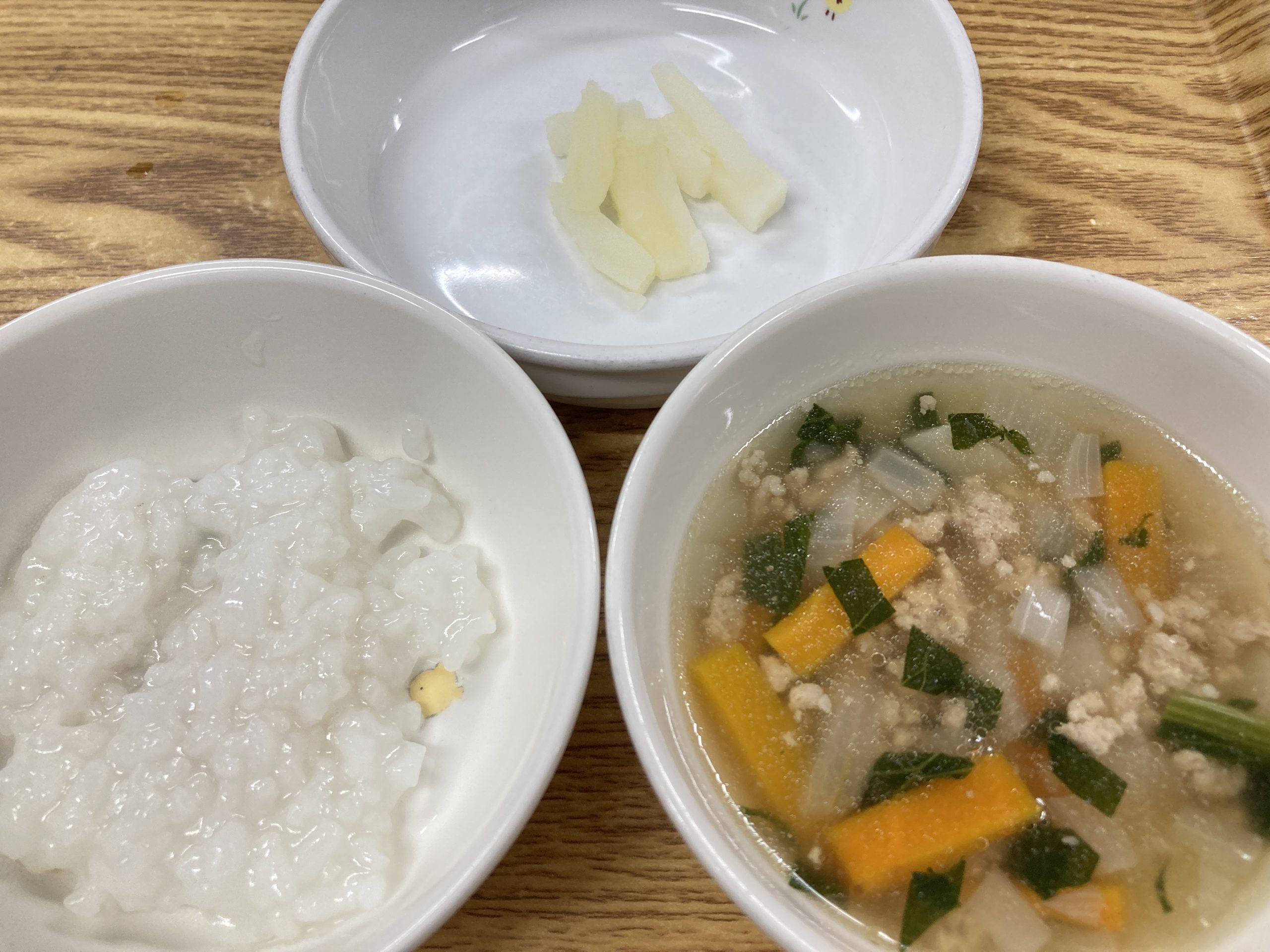 今日のごはんとおやつを紹介することで園での食育について知ってもらう
