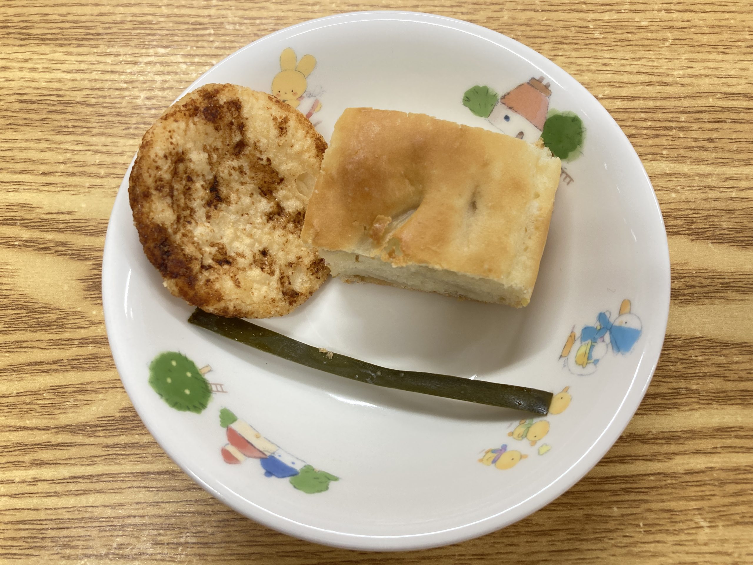 今日のごはんとおやつを紹介することで園での食育について知ってもらう
