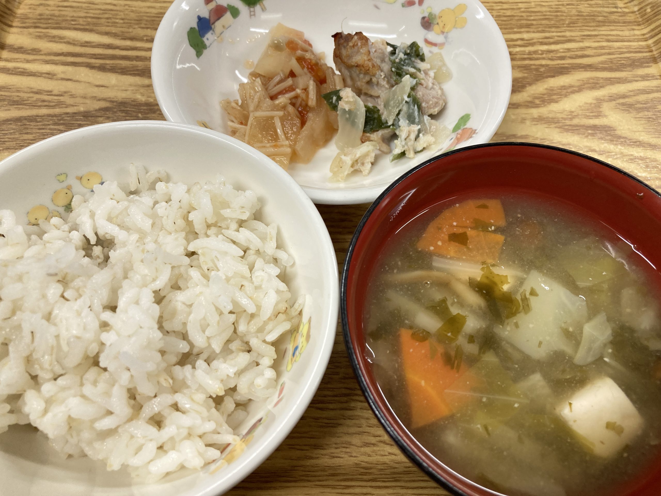 ☆ふじぐみ「べいおはなごじゅうぐるーぷ」のリクエストメニューでした☆採りたてのわかめは褐色ですが、湯通しすることで、緑色に変化します。これは、赤い色素(フコキサンチン)が、熱によって橙色に変化し、緑の色素(クロロフィル)が現れるためです。わかめは様々な種類があり、湯通ししたわかめを塩蔵したものを「湯通し塩蔵わかめ」と呼びます。また、これを塩抜きして乾燥したものを「乾燥わかめ」などと呼びます。