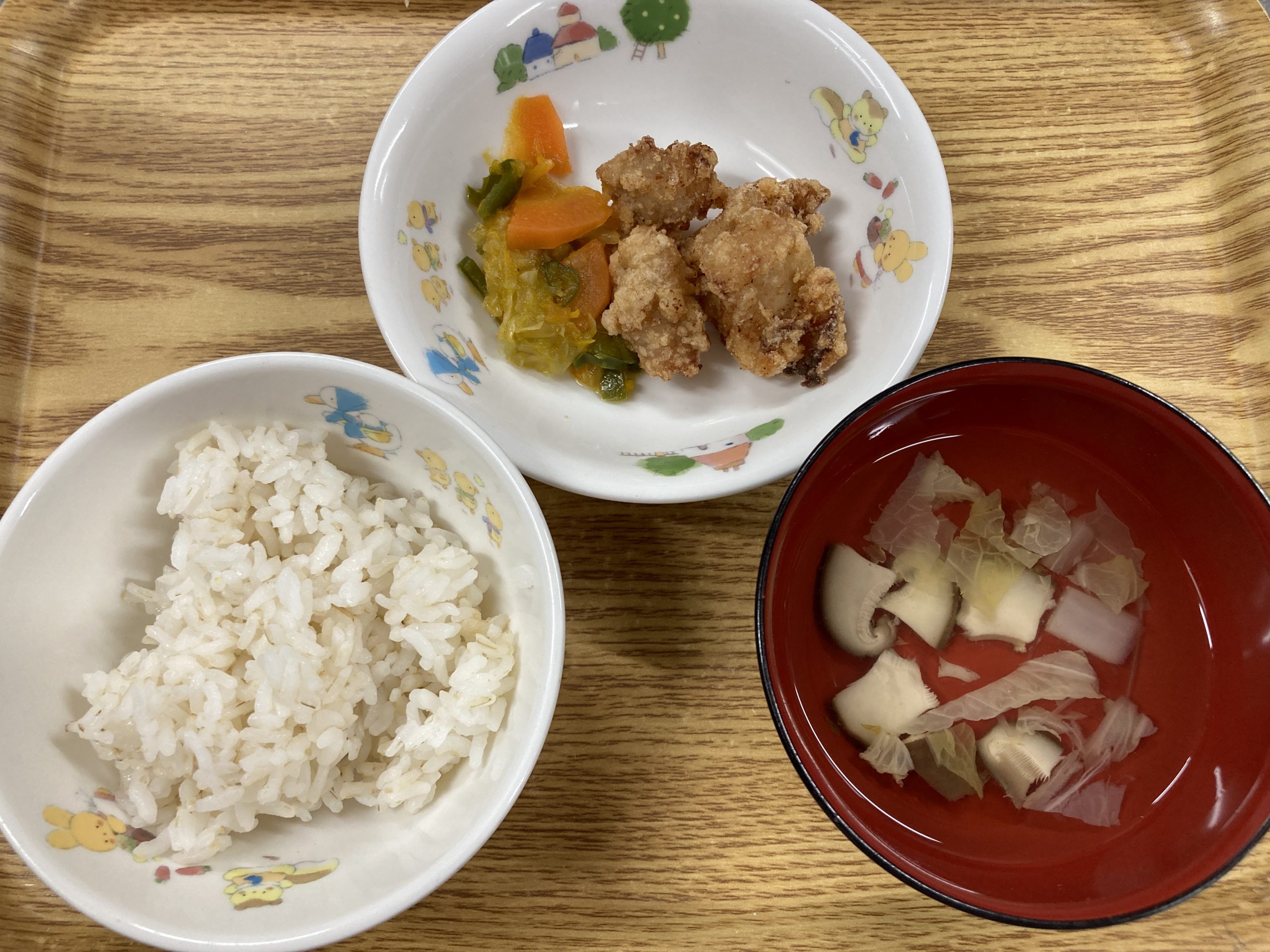 今日のごはんとおやつを紹介することで園での食育について知ってもらう