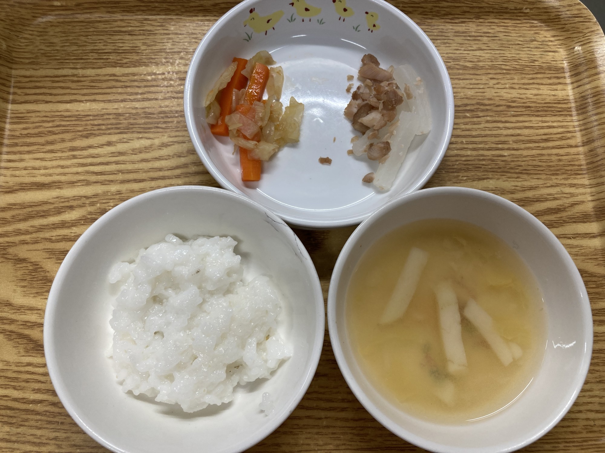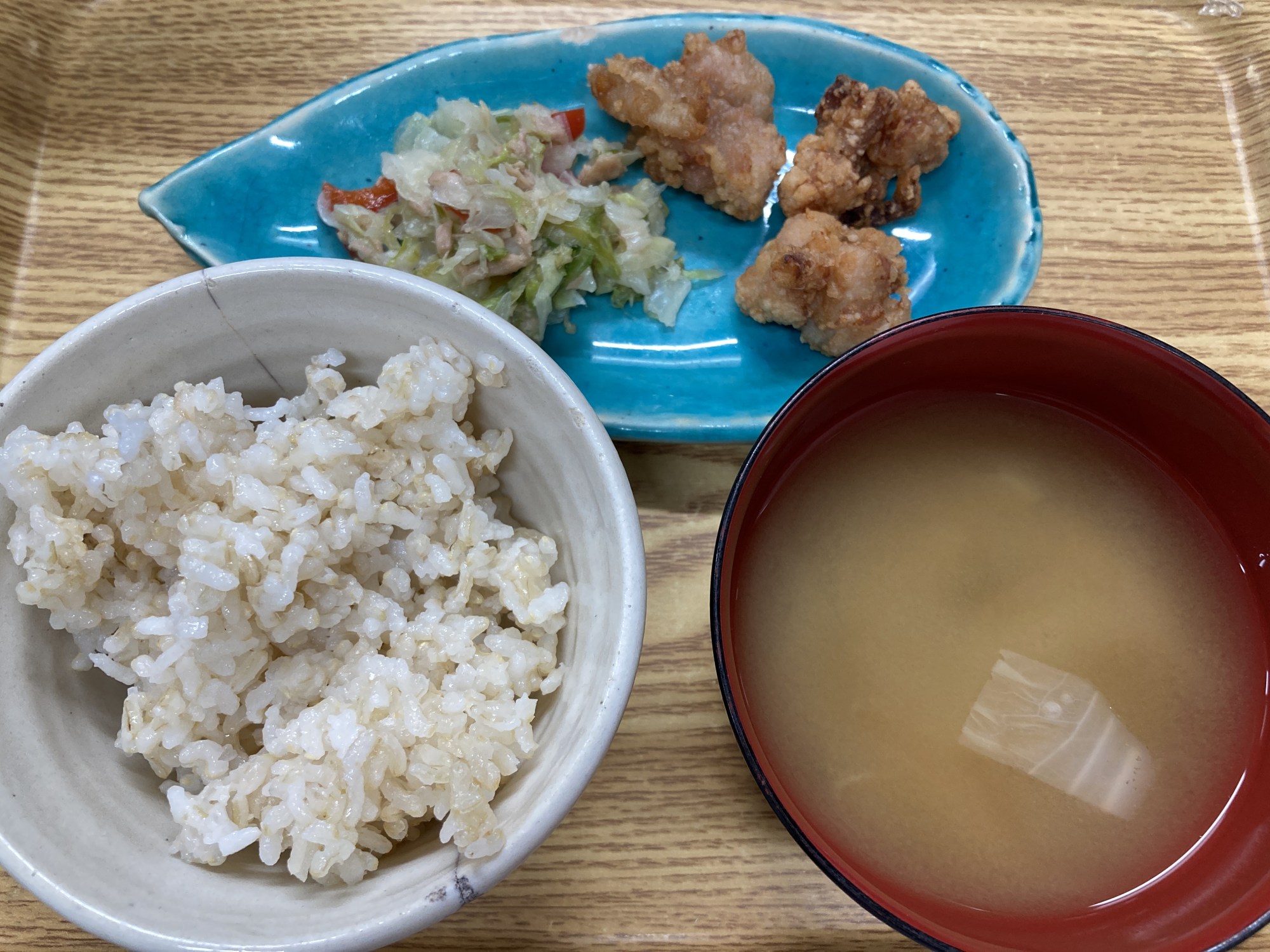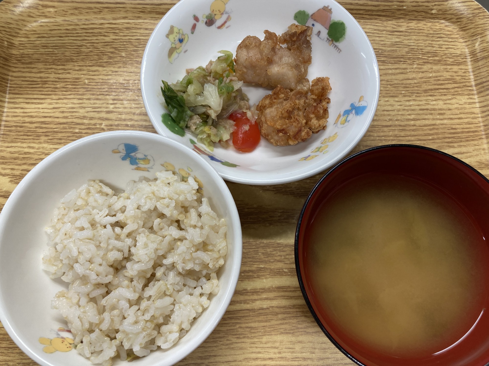 1枚目:【普通食:以上児】鶏肉の唐揚げ・和え物・生姜のみそ汁