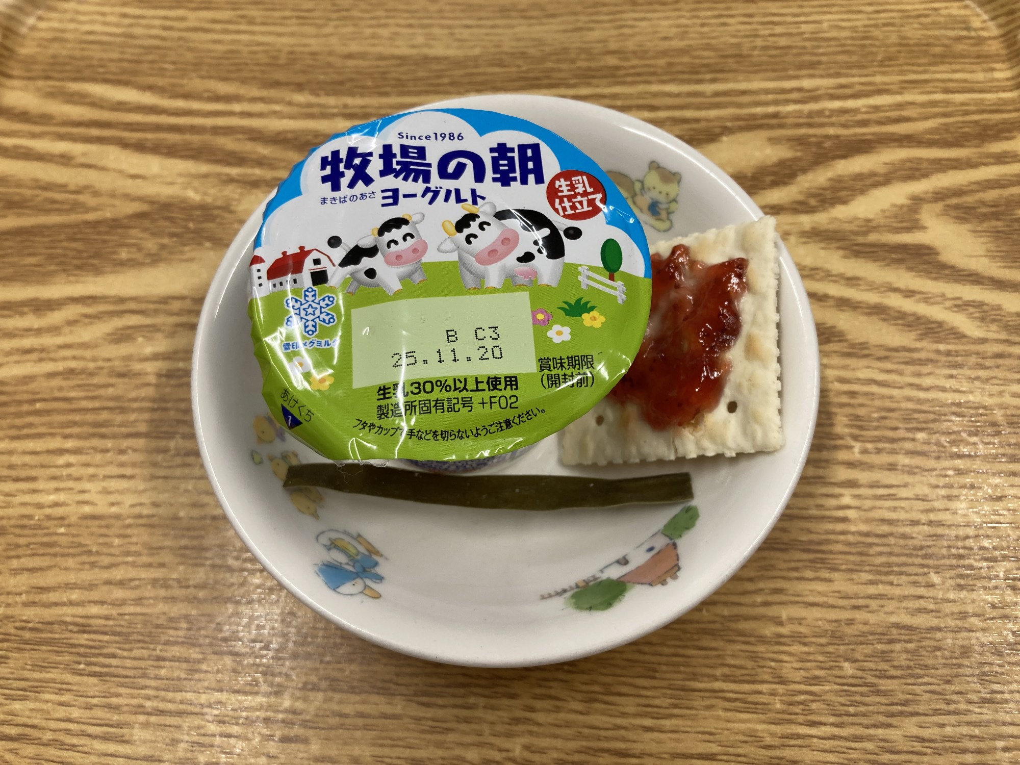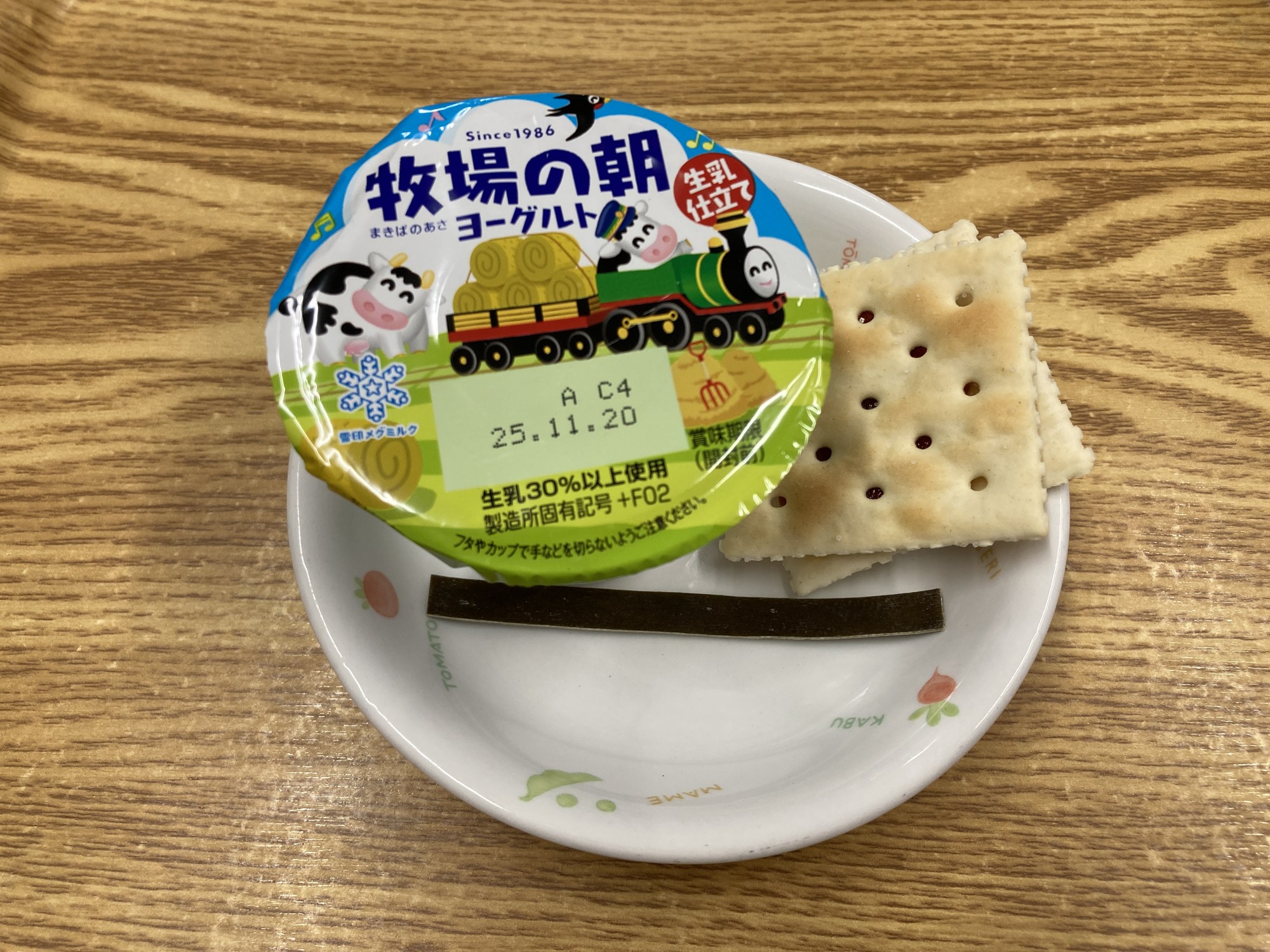 2枚目:【おやつ:以上児】ヨーグルト・♪パリパリこんぶ・クラッカージャムサンド