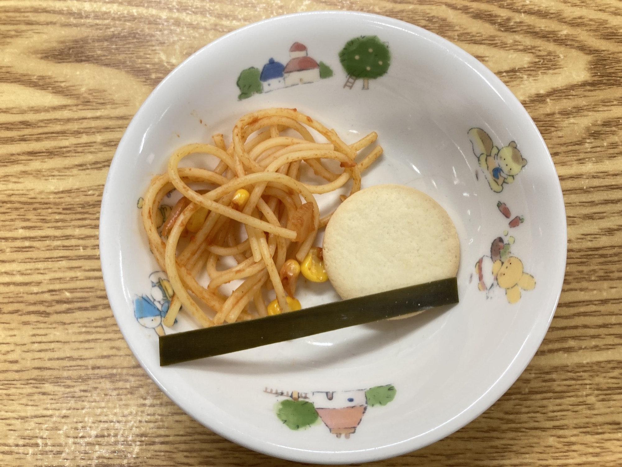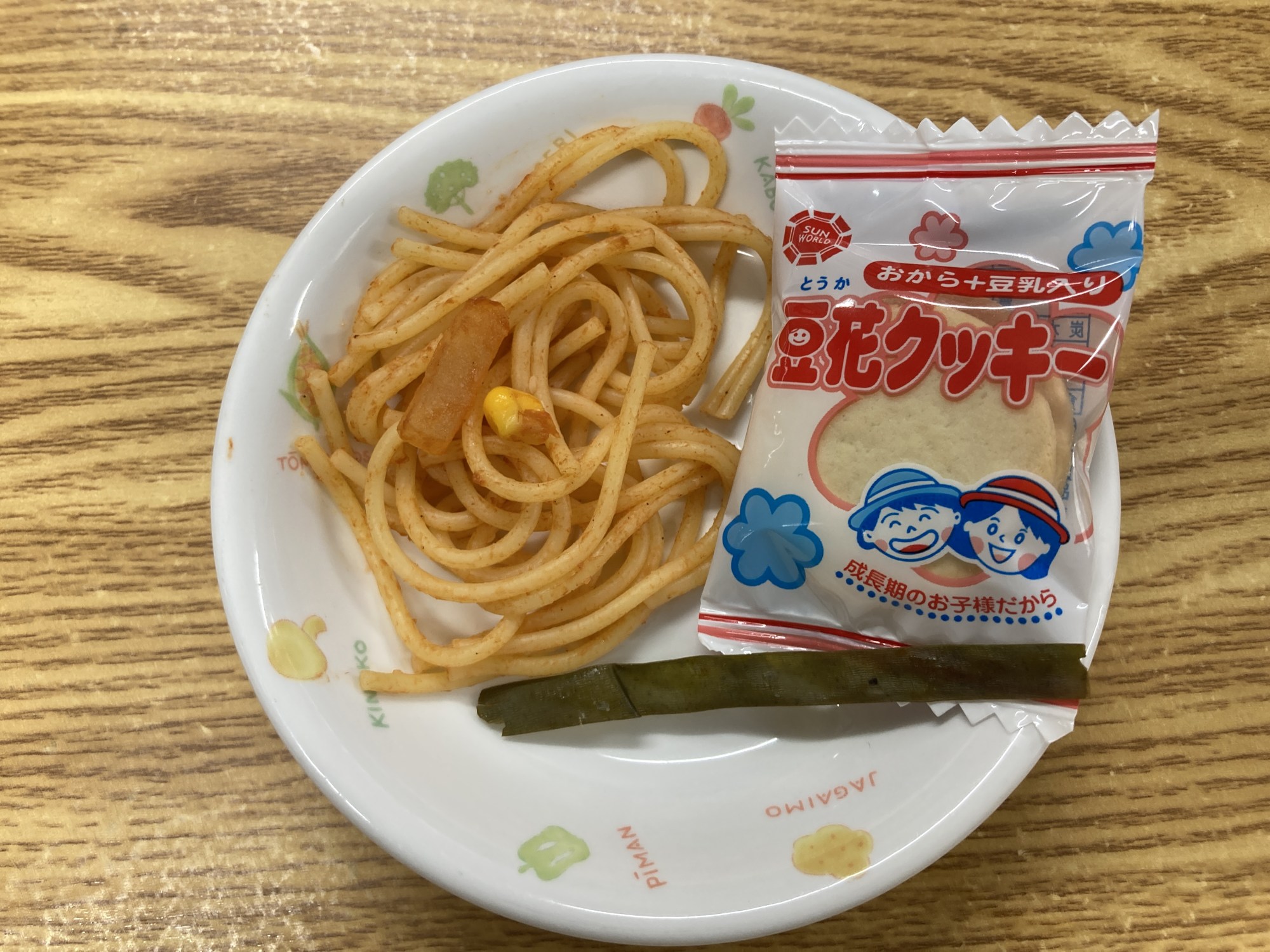 2枚目:【おやつ:以上児】♪スパゲティナポリタン・♪酢こんぶ・お菓子