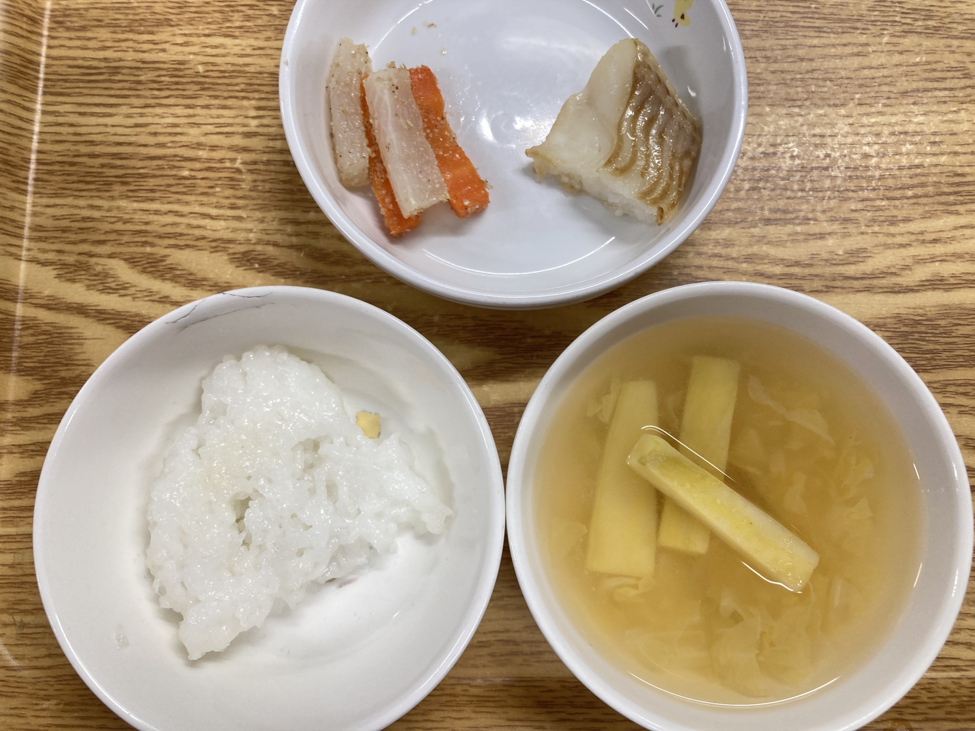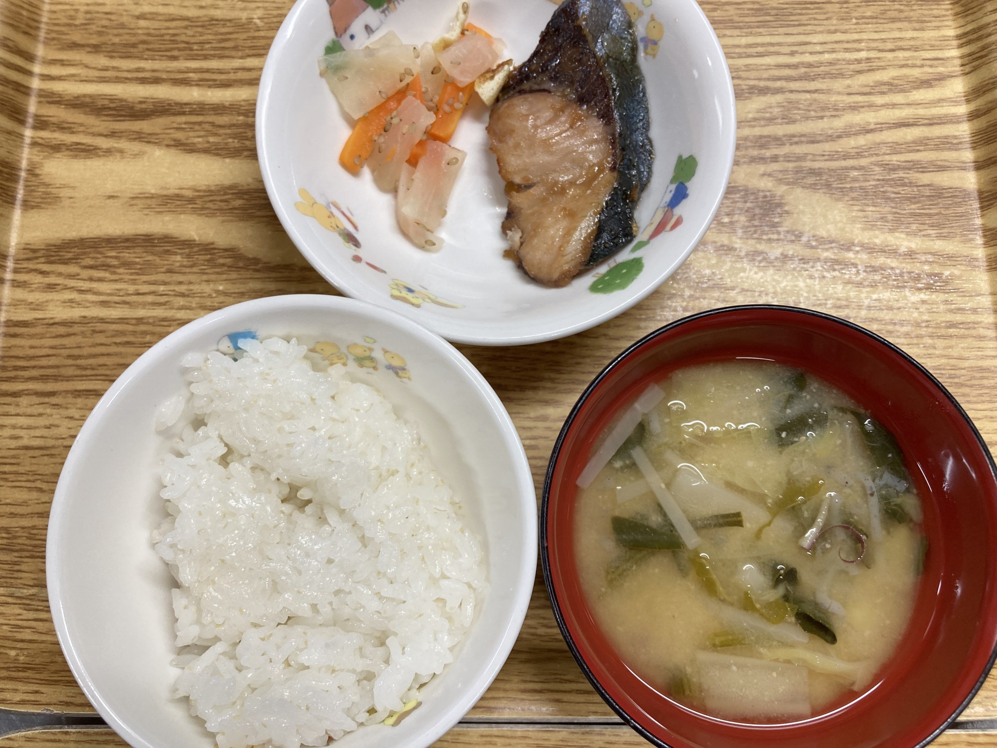 1枚目:【普通食:以上児】ブリの照り焼き・大根のごま塩炒め・さつま汁