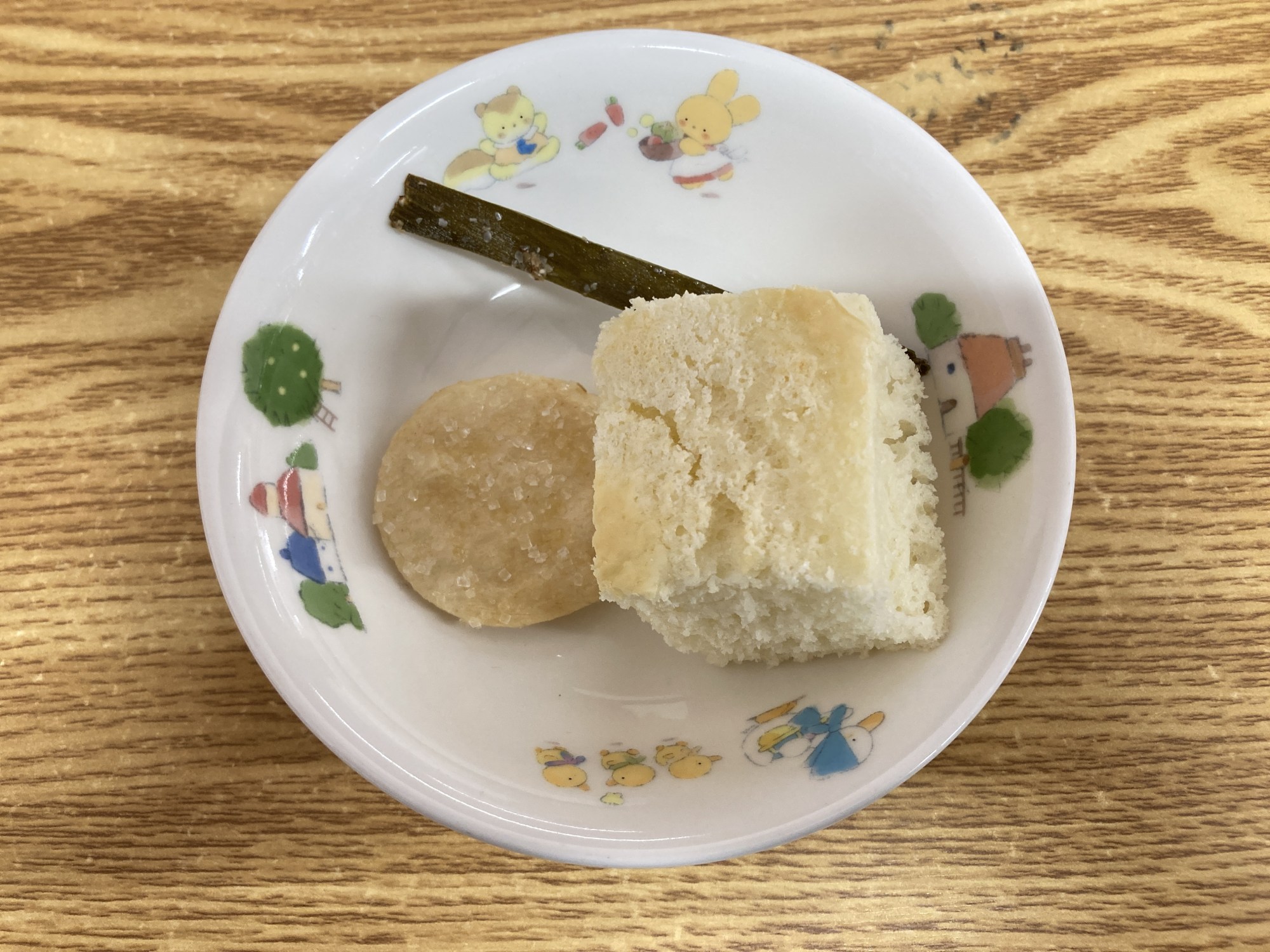 4枚目:【おやつ:未満児】♪シュガーケーキ・♪ごまこんぶ・せんべい