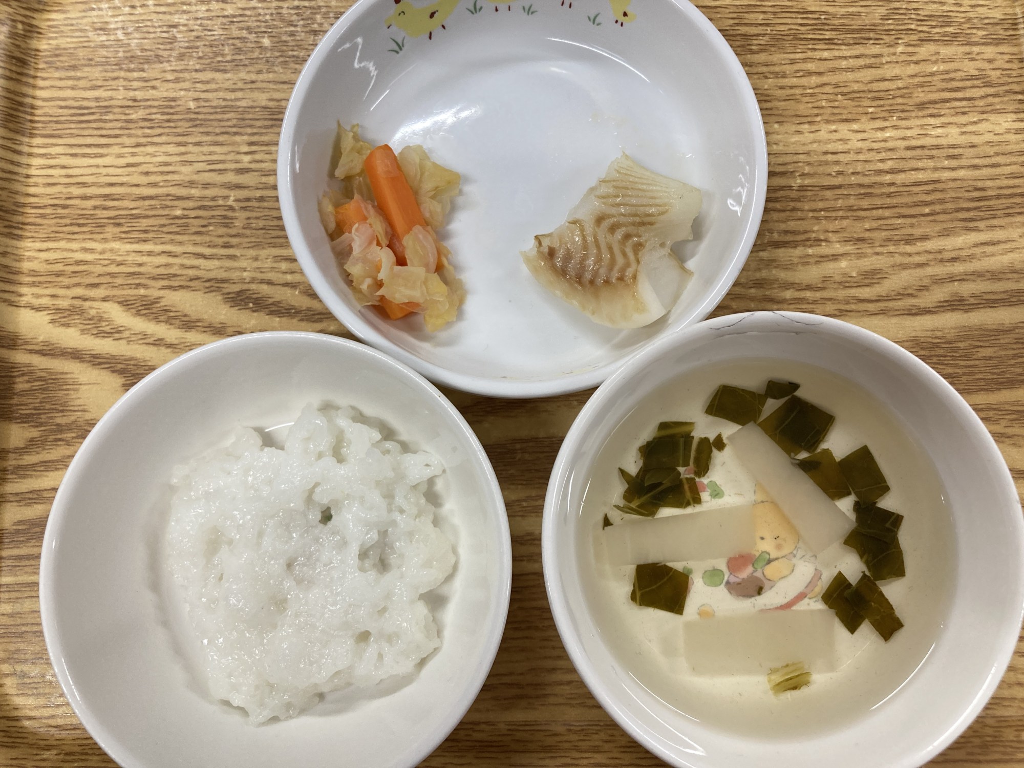 5枚目:【離乳食】カレイの醤油焼き・人参しりしりサラダ・大根スープ