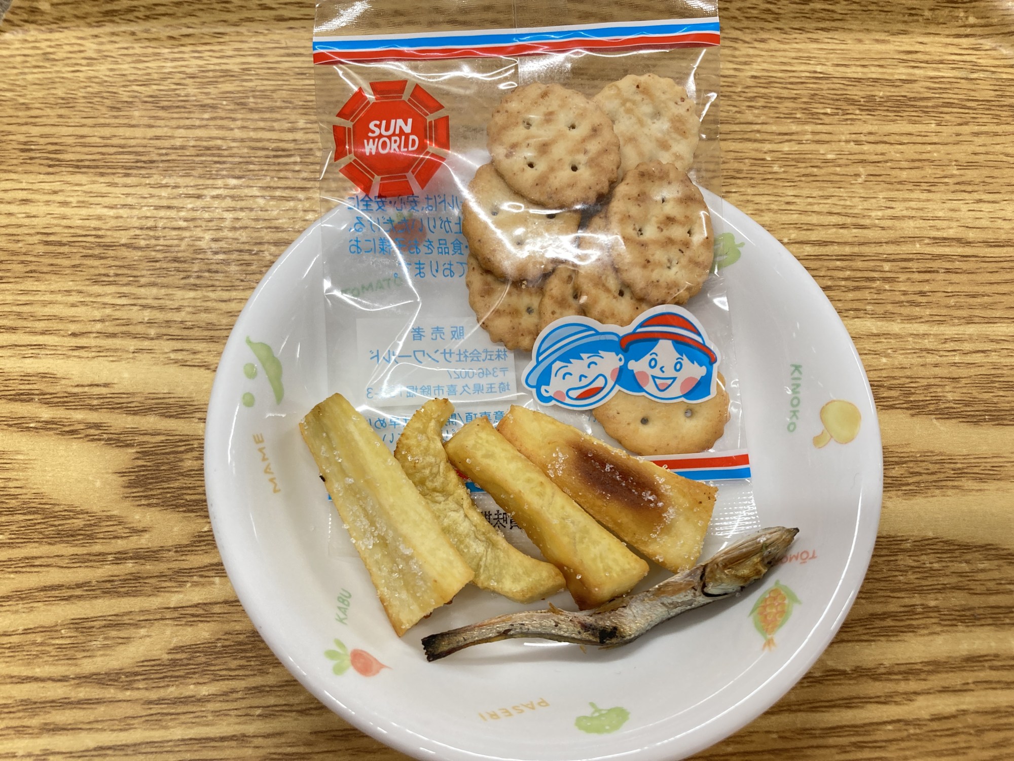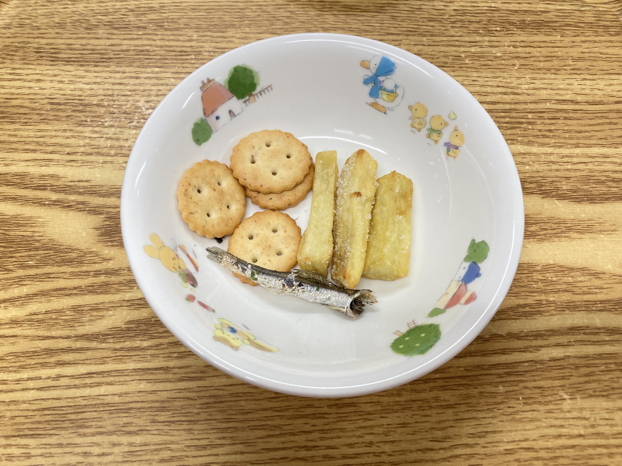 2枚目:【おやつ:以上児】♪さつま芋のシュガースティック・♪青のりじゃこ・お菓子