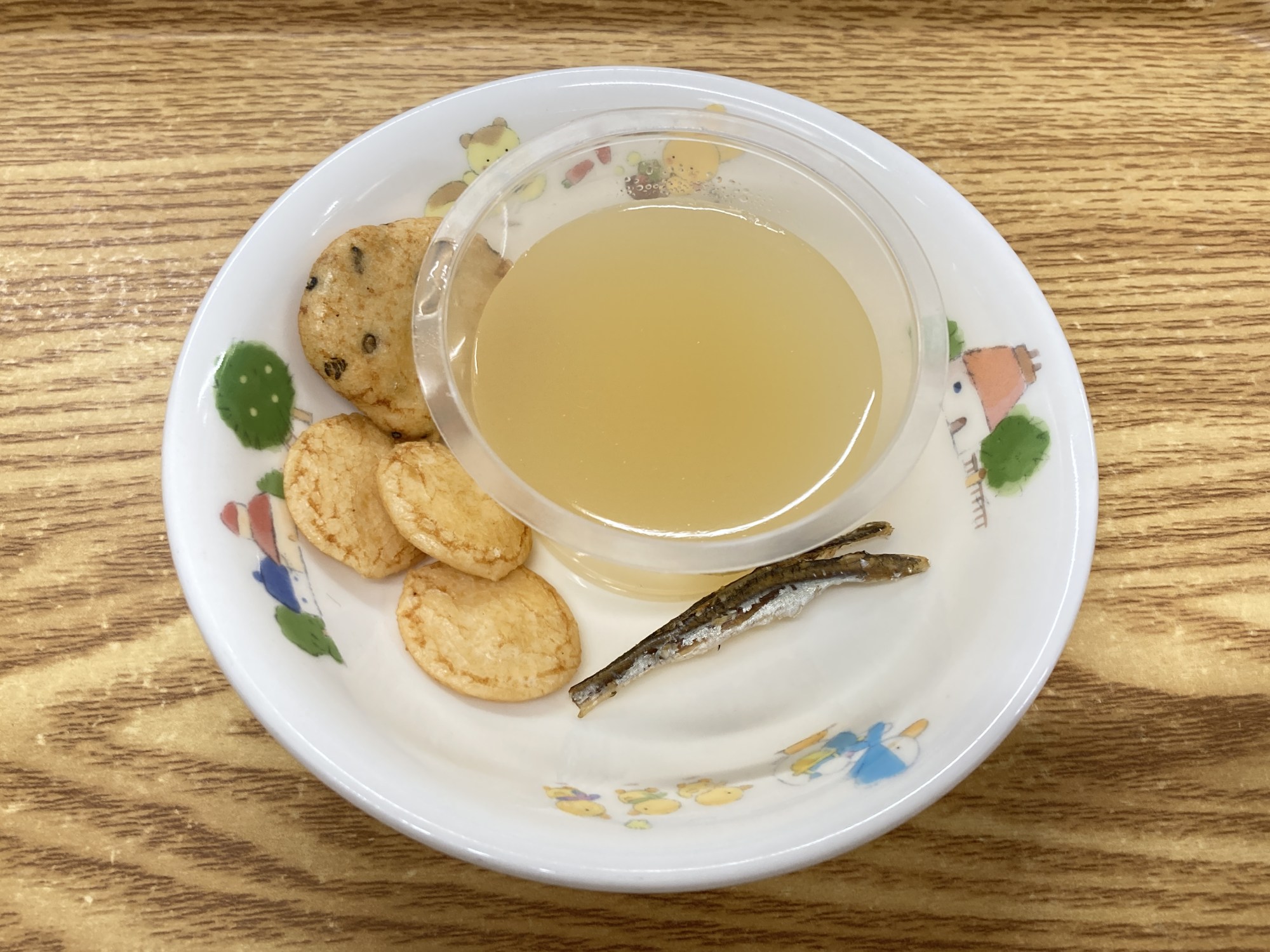 2枚目:【おやつ:以上児】♪ゼリー・♪ごまじゃこ・お菓子