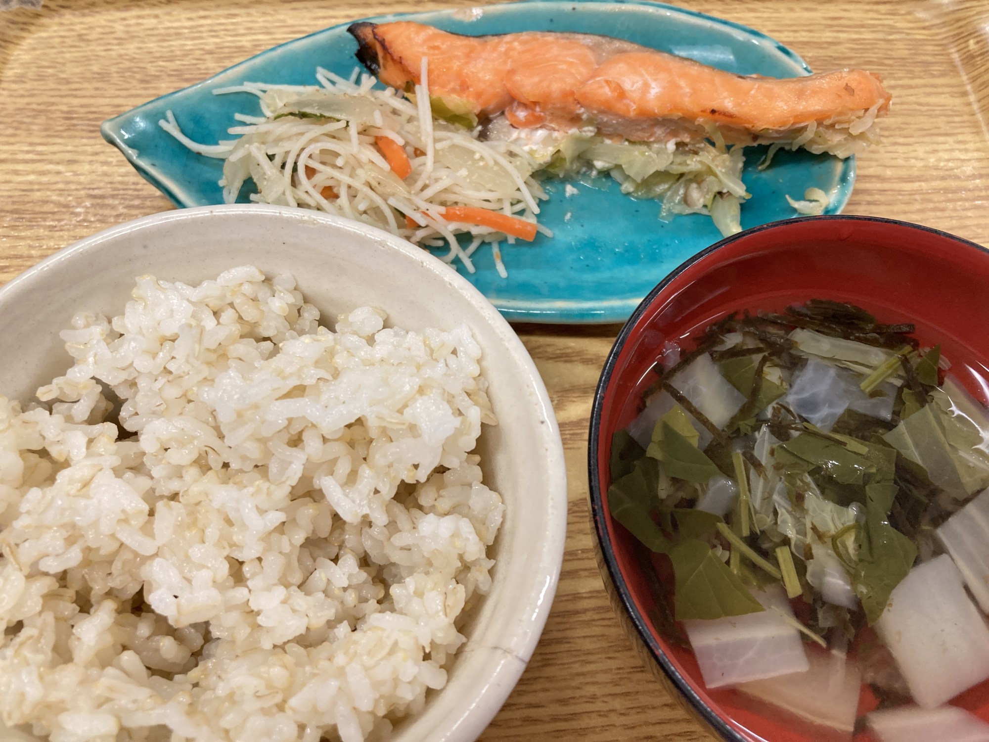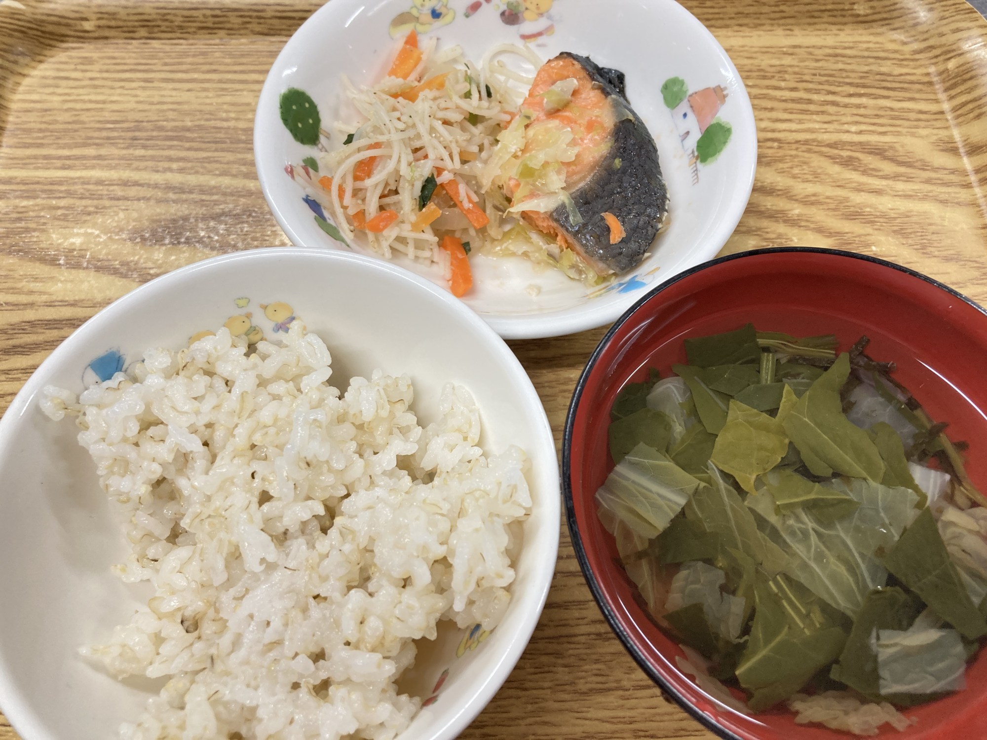 1枚目:【普通食:以上児】サケのちゃんちゃん焼き・ごまビーフン炒め・のり入りすまし汁