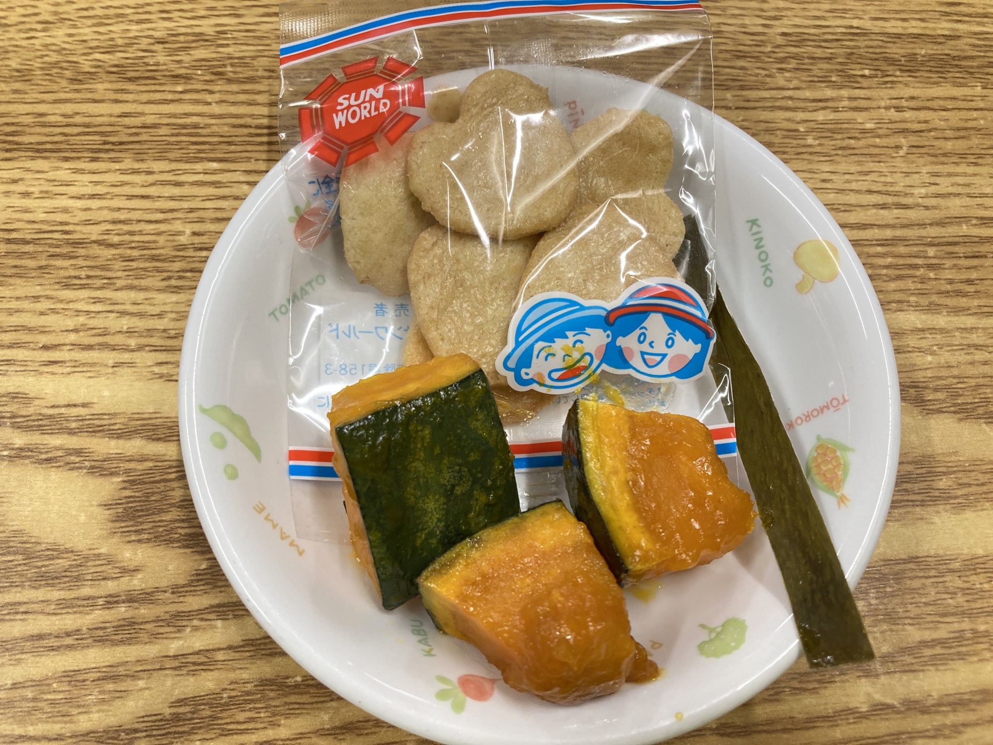 2枚目:【おやつ:以上児】♪南瓜のバター焼き・こんぶ・お菓子