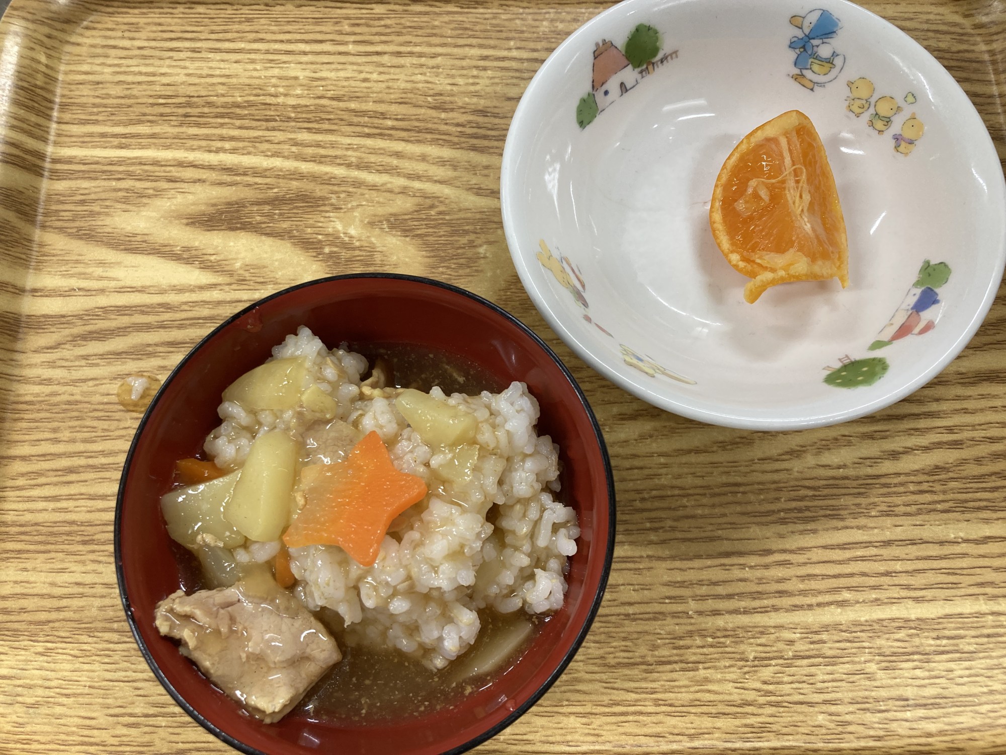 3枚目:【普通食:未満児】カレーライス・みかん