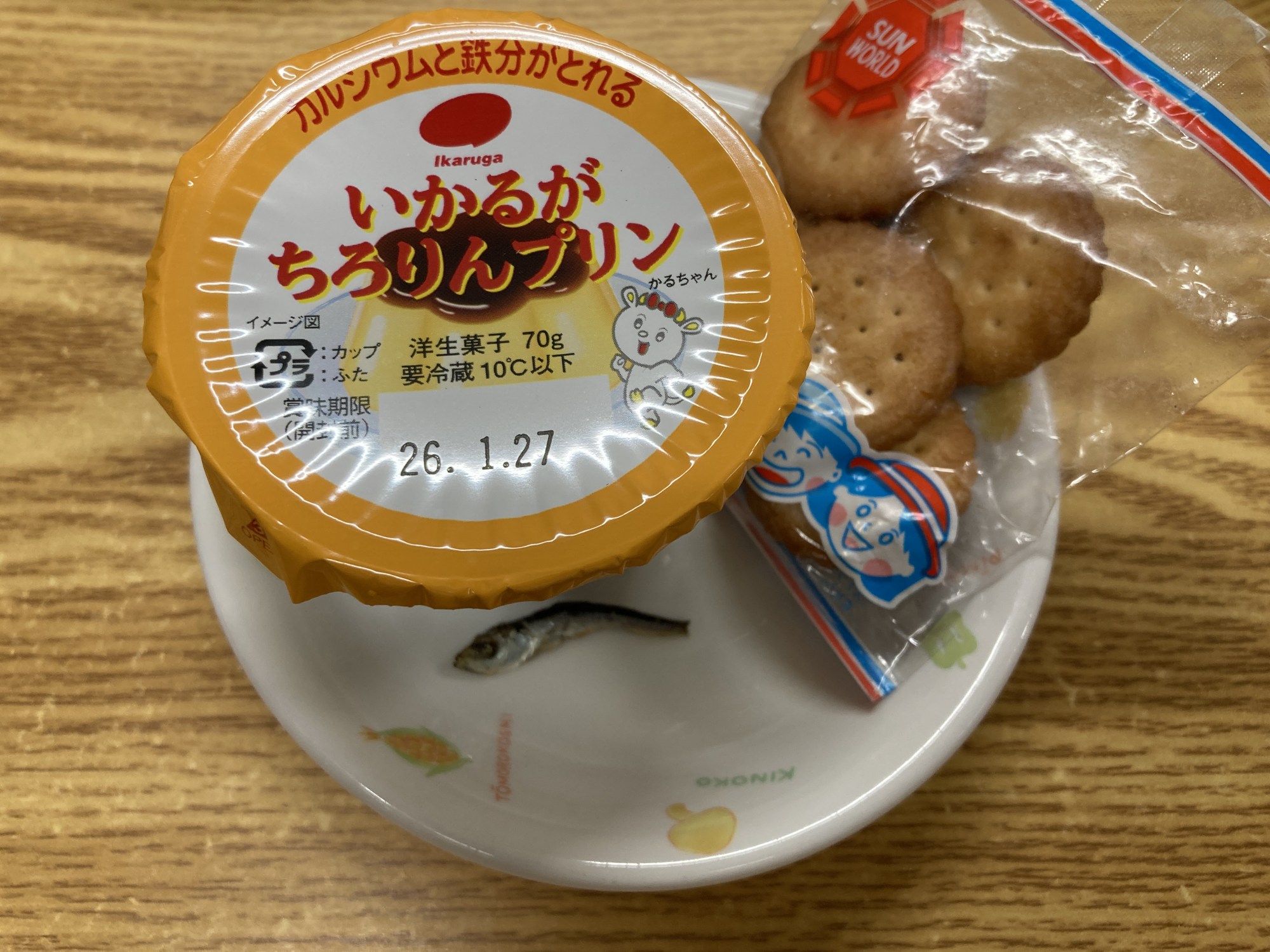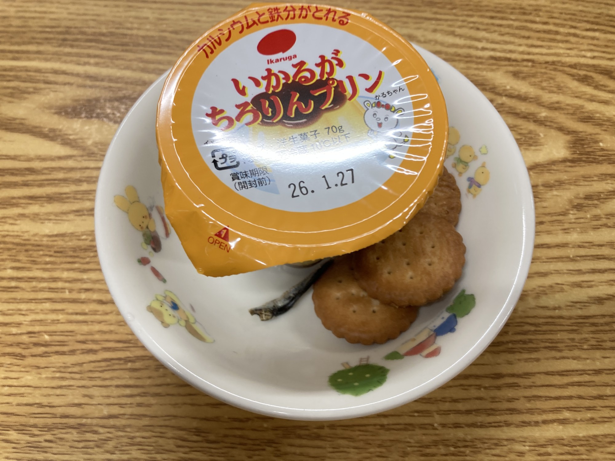 2枚目:【おやつ:以上児】プリン(卵不使用)・♪ごまじゃこ・お菓子