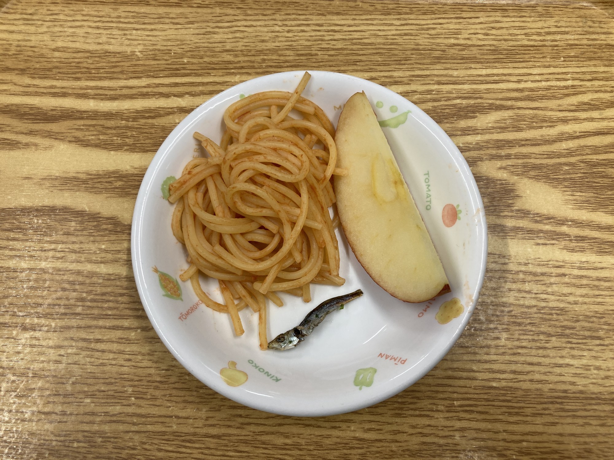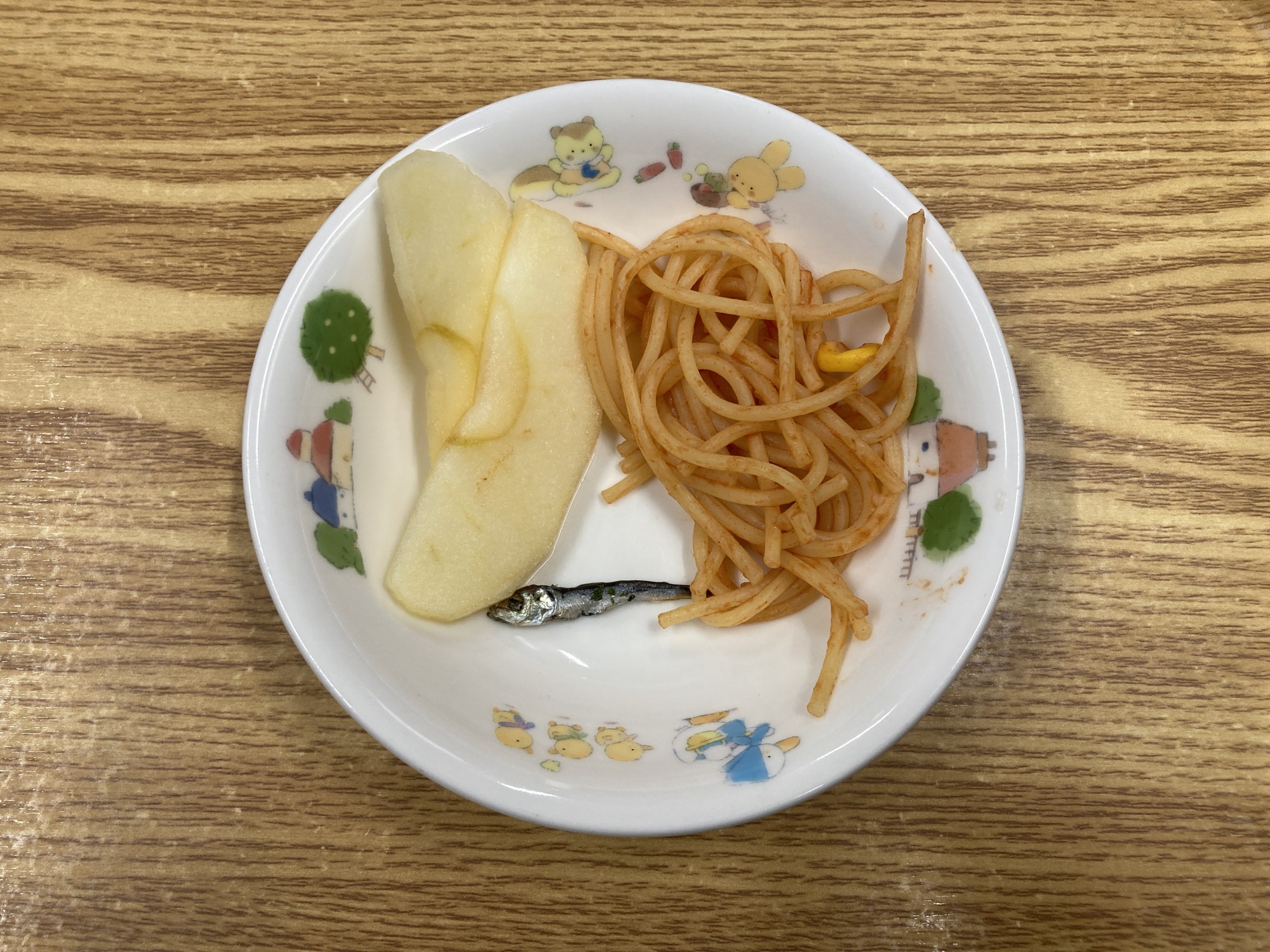 2枚目:【おやつ:以上児】♪スパゲティナポリタン・♪青のりじゃこ・くだもの