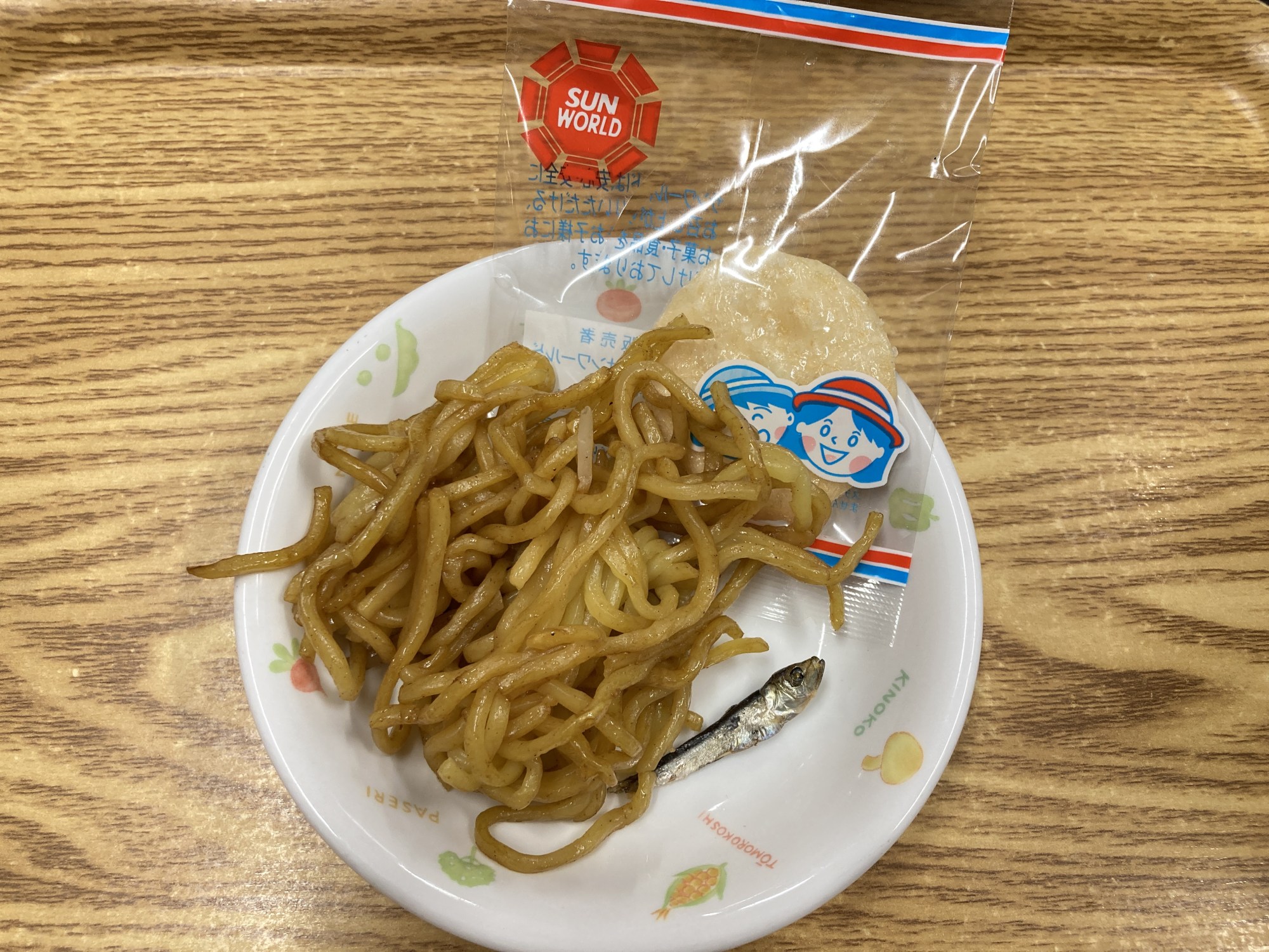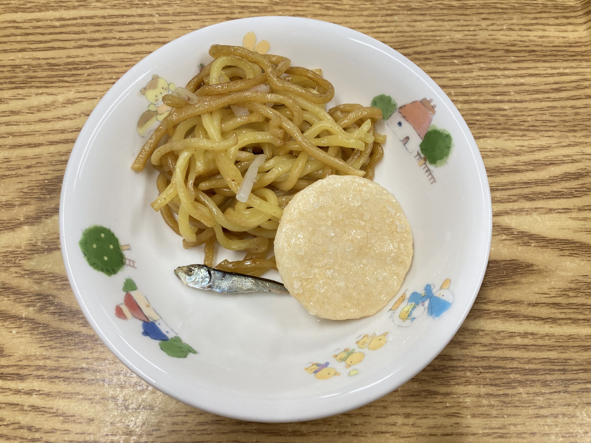 2枚目:【おやつ:以上児】♪ソース焼きそば・♪炒りじゃこ・せんべい