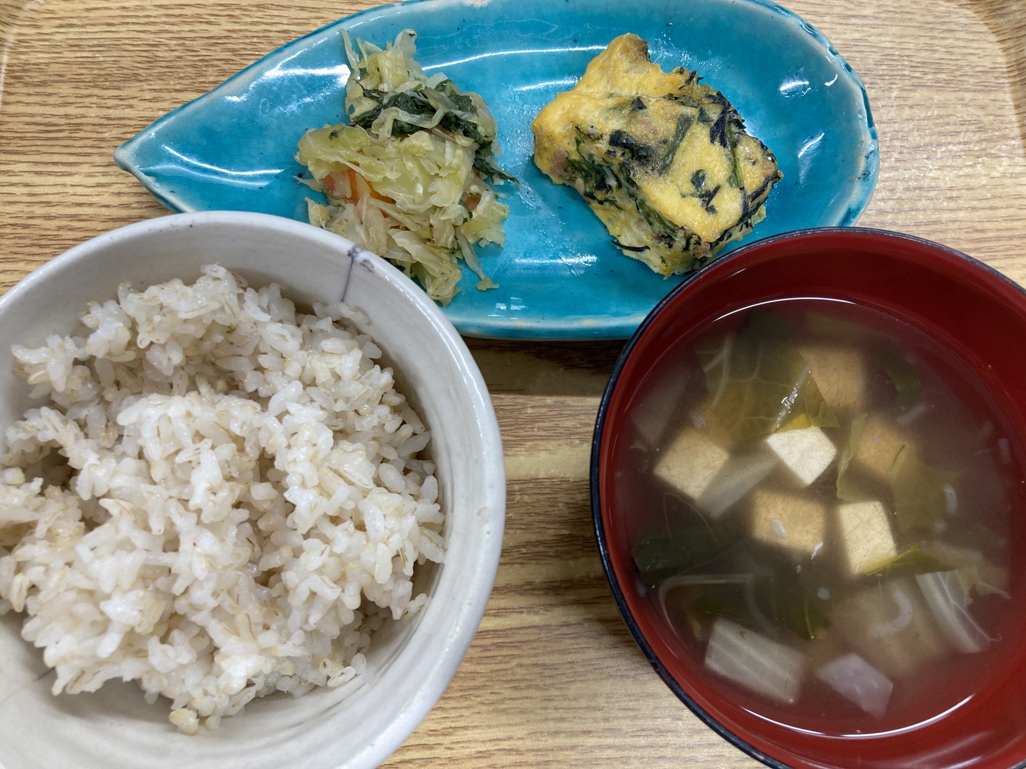 1枚目:【普通食:以上児】ほうれん草の焼き卵・おかか和え・うすくず汁