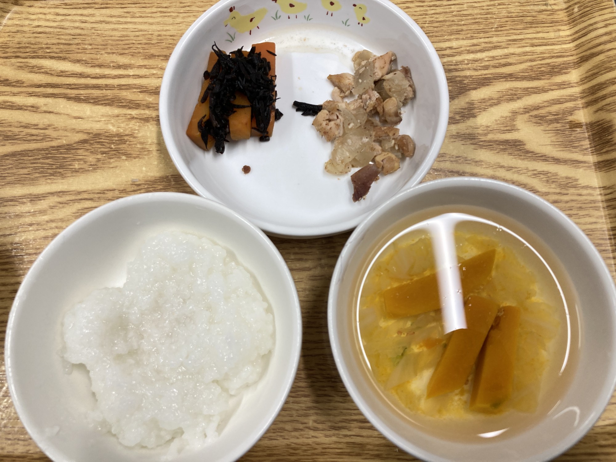 5枚目:【離乳食】鶏肉のおかか焼き・ひじきの煮物・南瓜の和風スープ