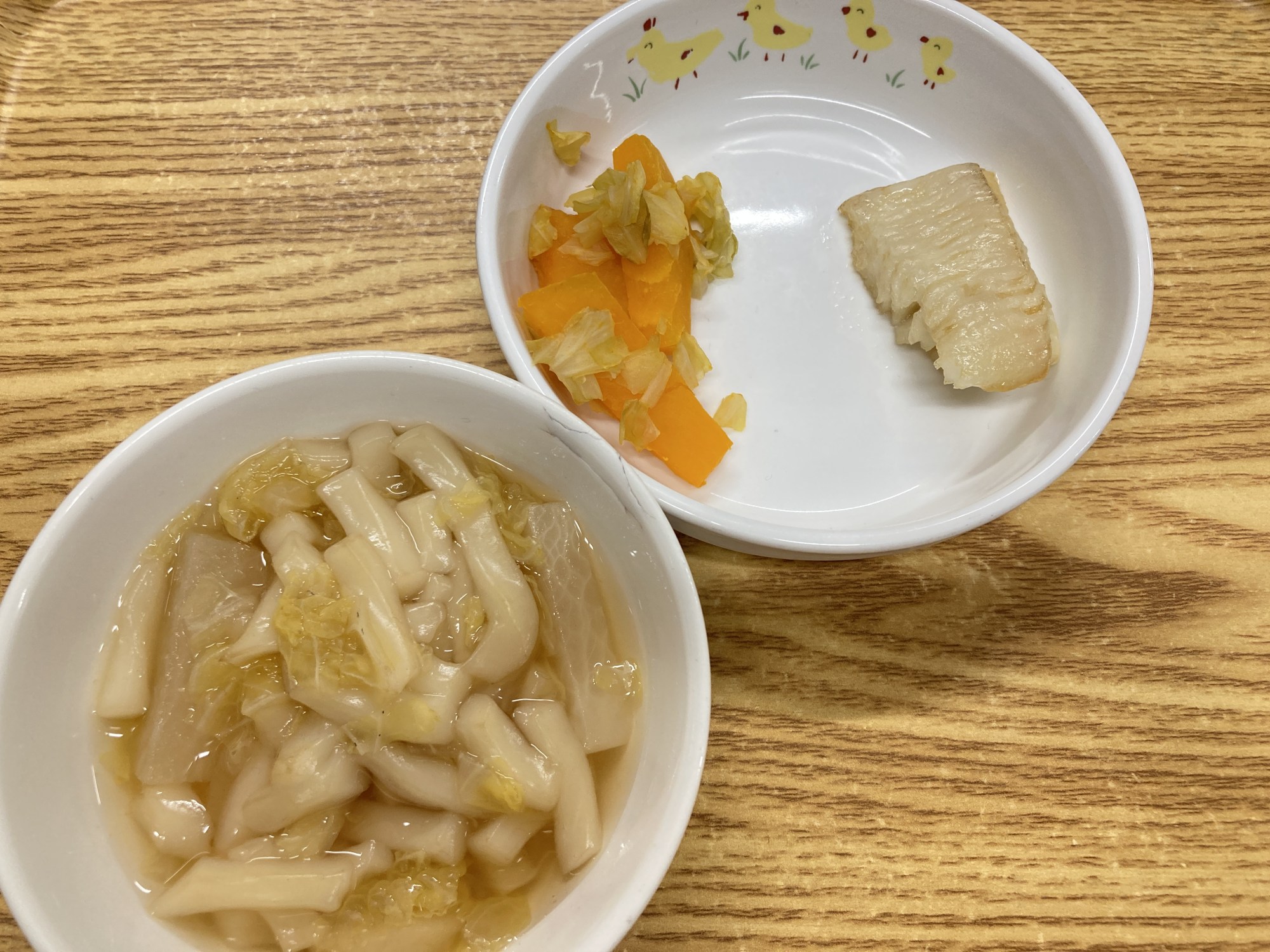 5枚目:【離乳食】醤油うどん・カレイの醤油焼き・南瓜のサラダ