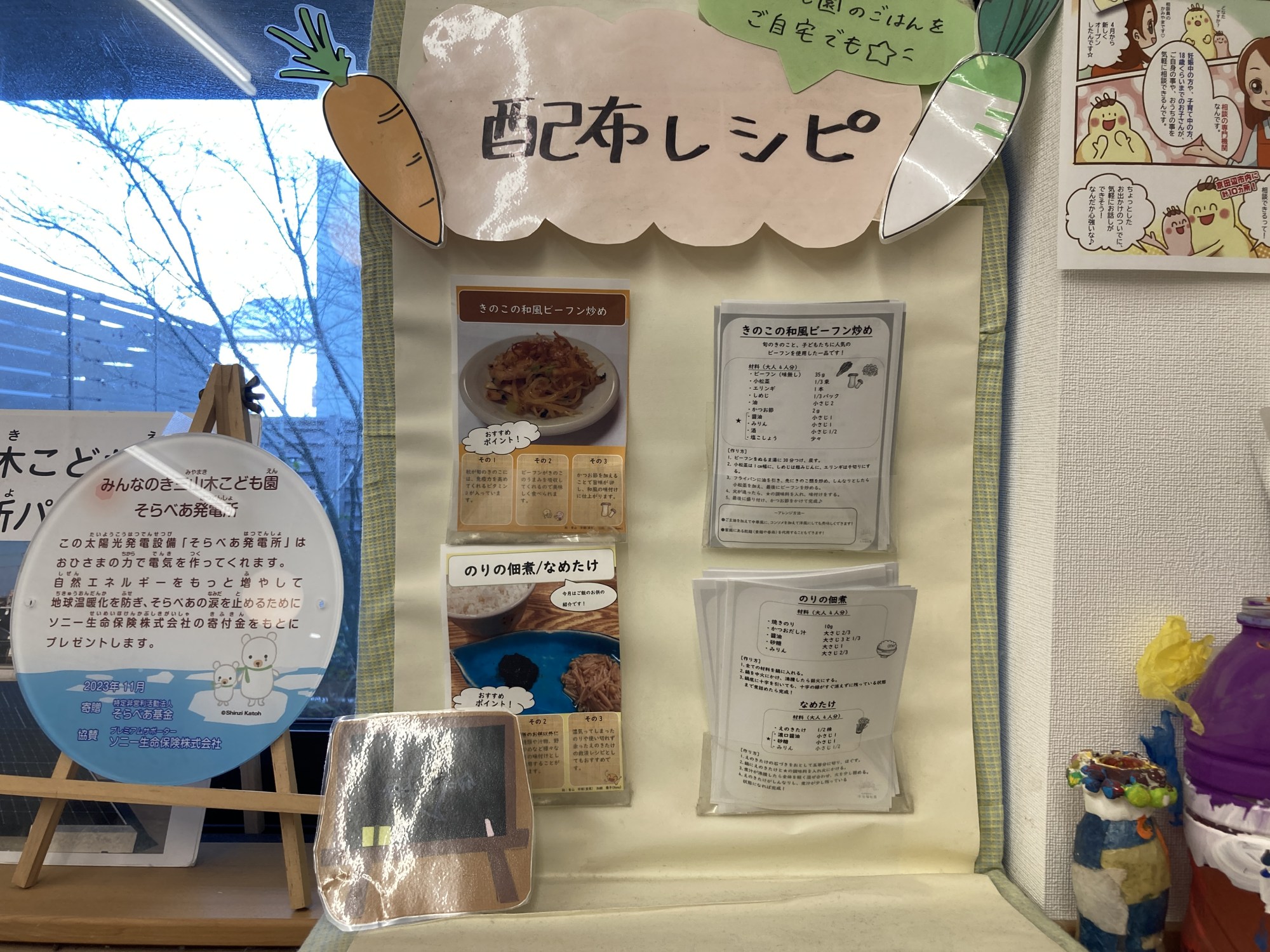 今日のごはんとおやつを紹介することで園での食育について知ってもらう