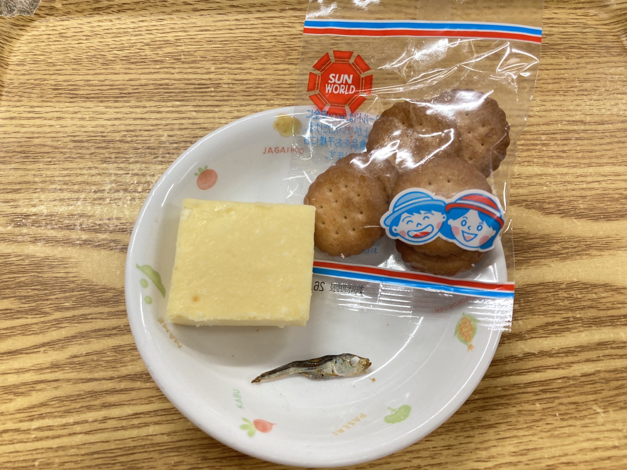 2枚目:【おやつ:以上児】♪チーズケーキ・♪甘辛じゃこ・お菓子