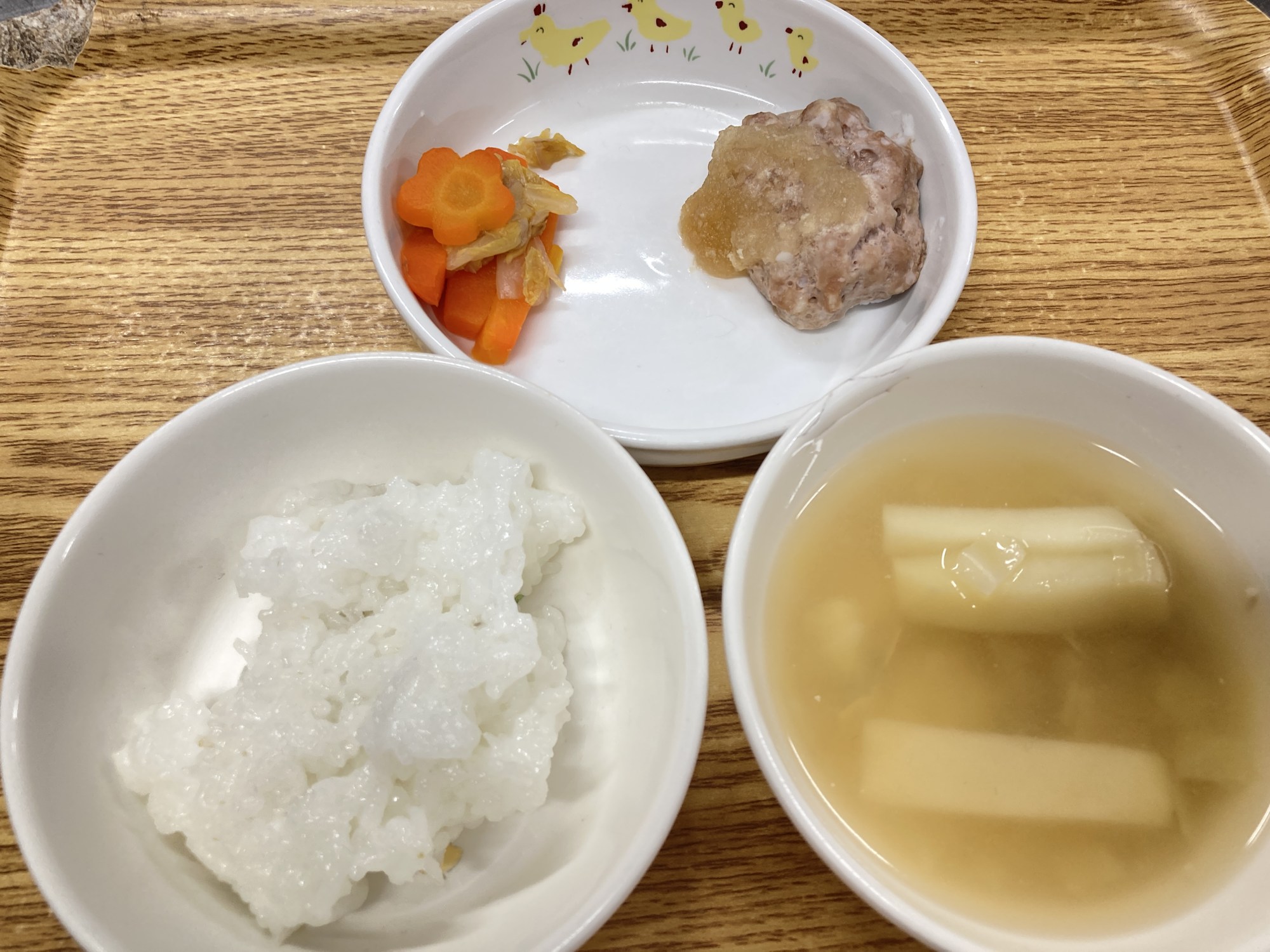 5枚目:【離乳食】おろしハンバーグ・白菜の和え物・ごまみそ汁