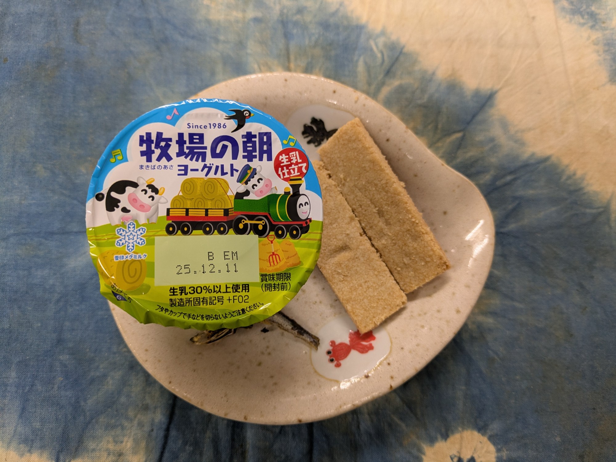 2枚目:【以上児:おやつ】ヨーグルト・青のりじゃこ・ショートブレッド