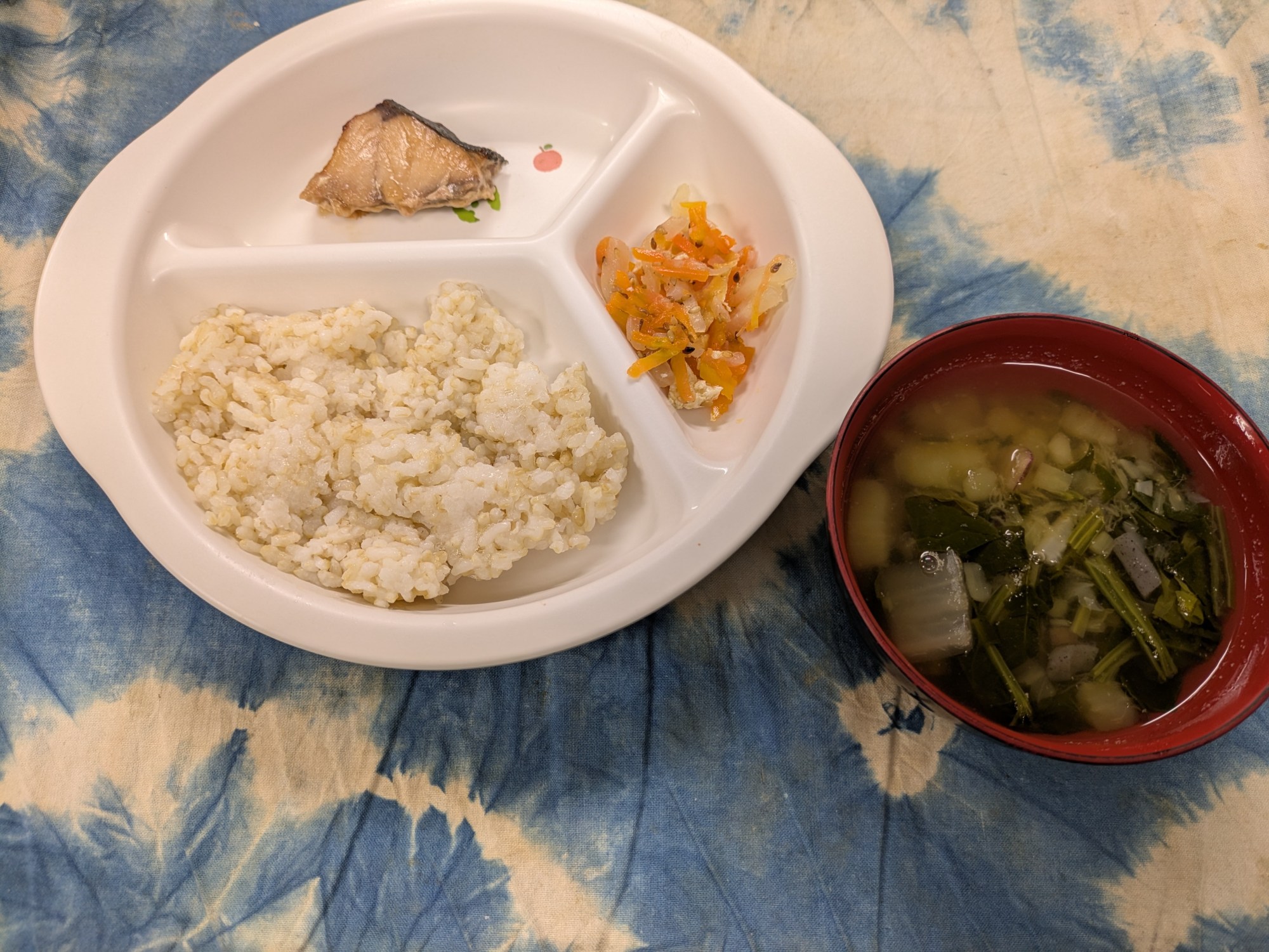 3枚目:【未満児:普通食】ブリの照り焼き・大根のごま塩炒め・さつま汁