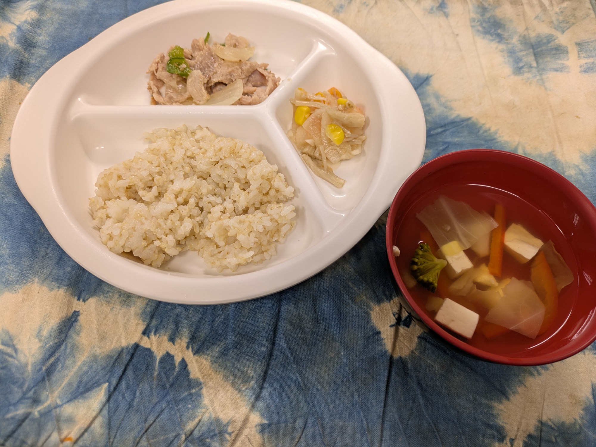 1枚目:【以上児:普通食】豚肉のごまみそ焼き・大根の和え物・豆腐のすまし汁