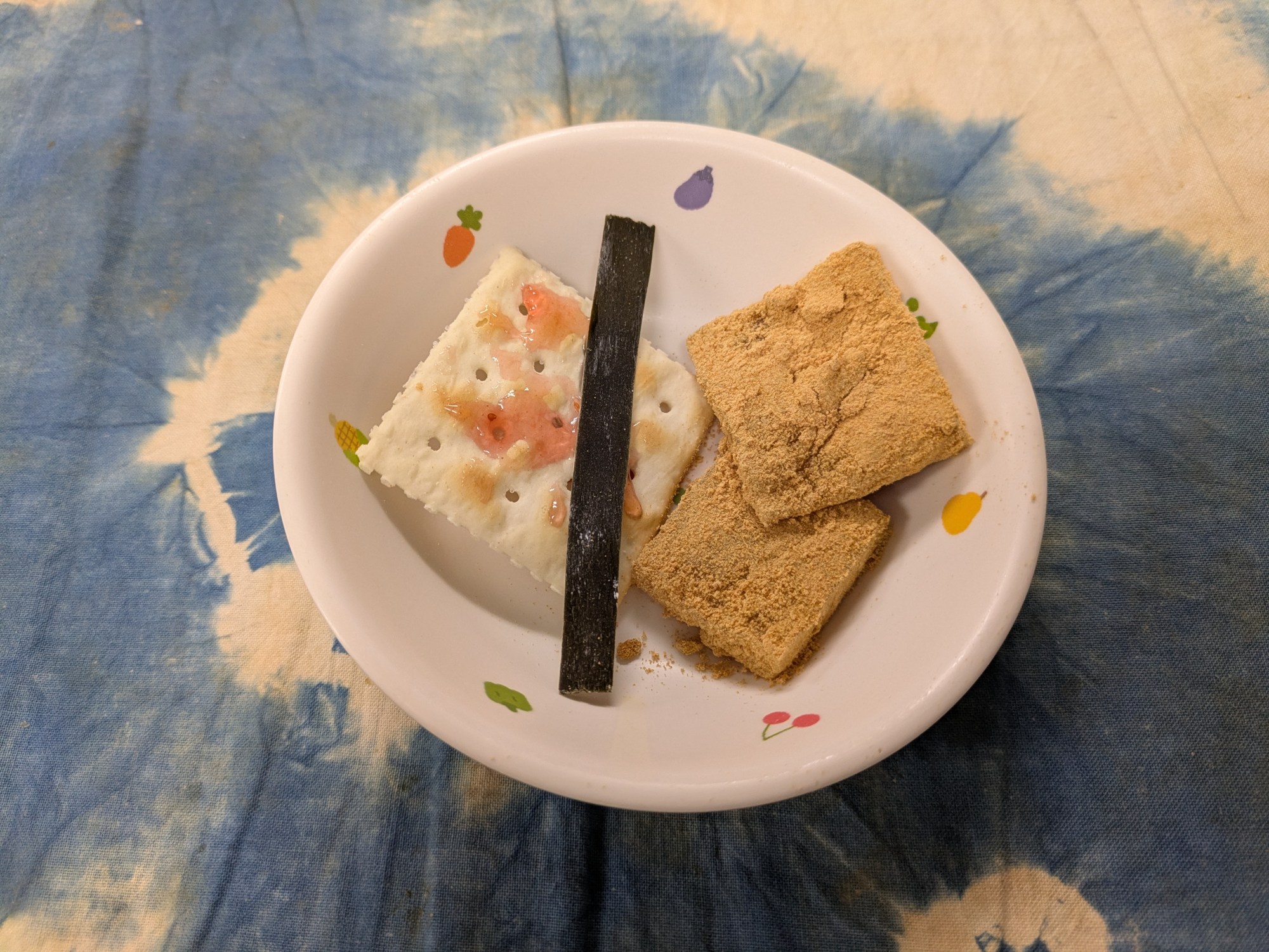 2枚目:【以上児:おやつ】くずもち・こんぶ・クラッカージャムサンド