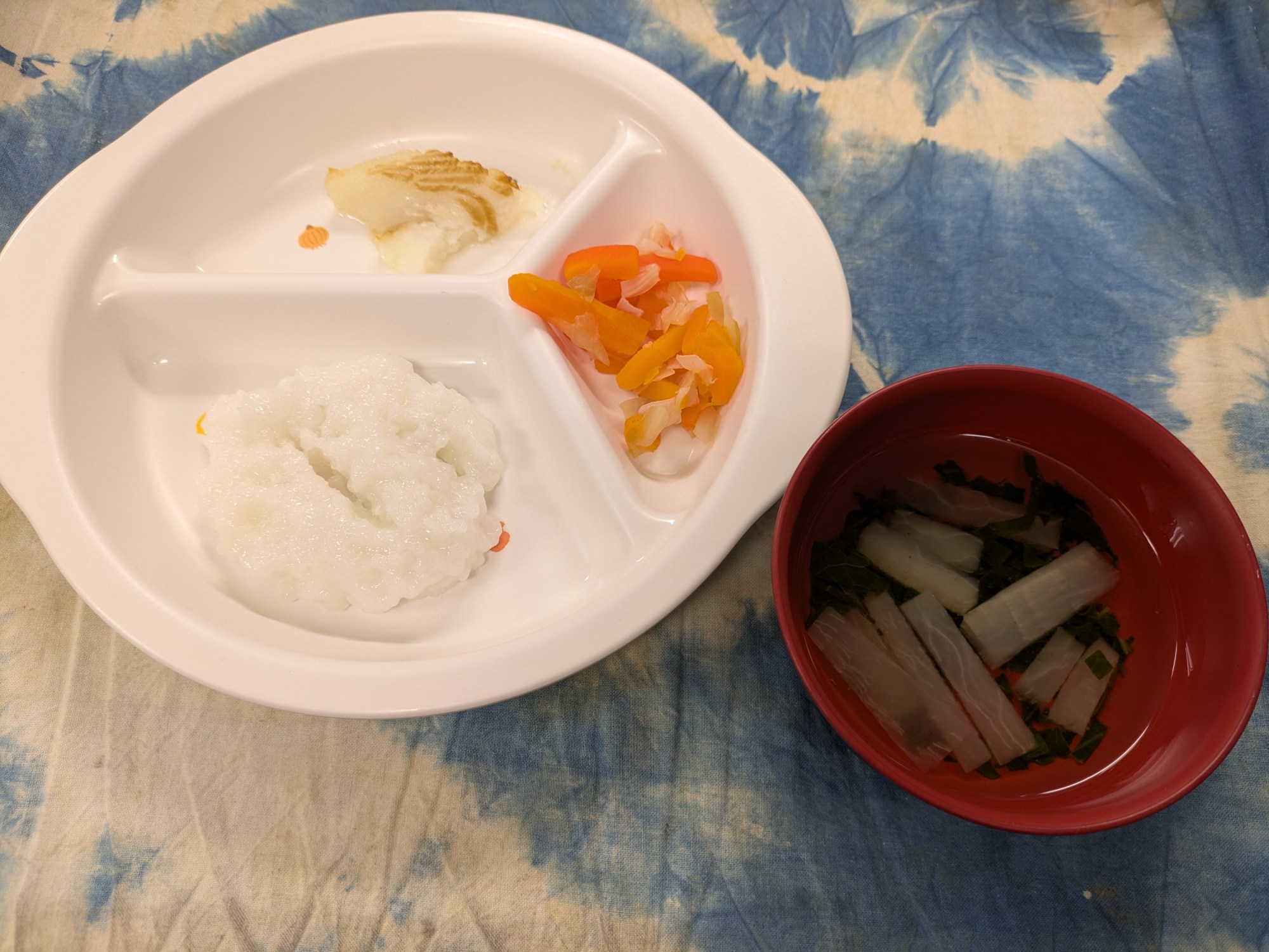 5枚目:【離乳食】カレイの醤油焼き・人参しりしりサラダ・大根スープ