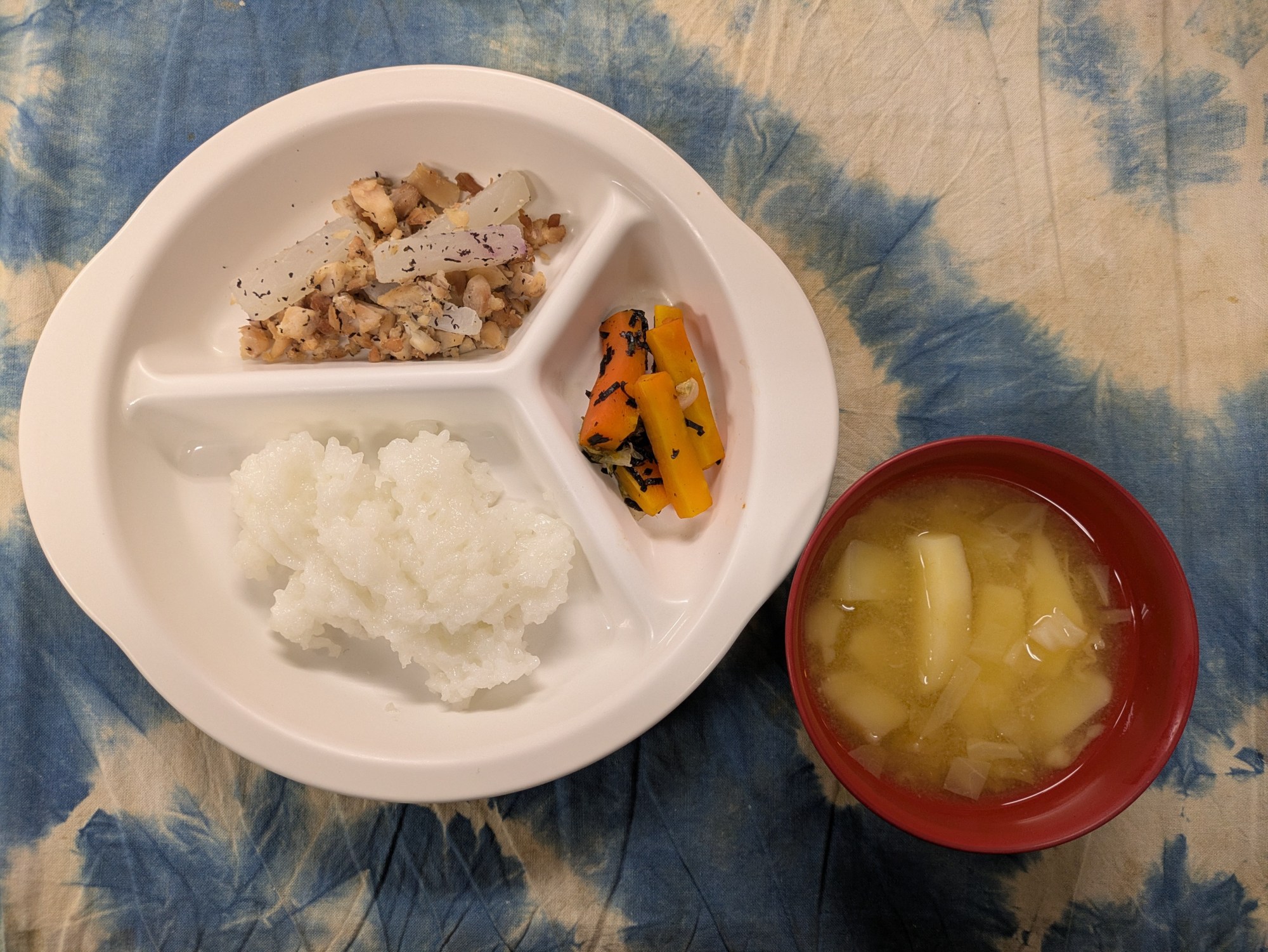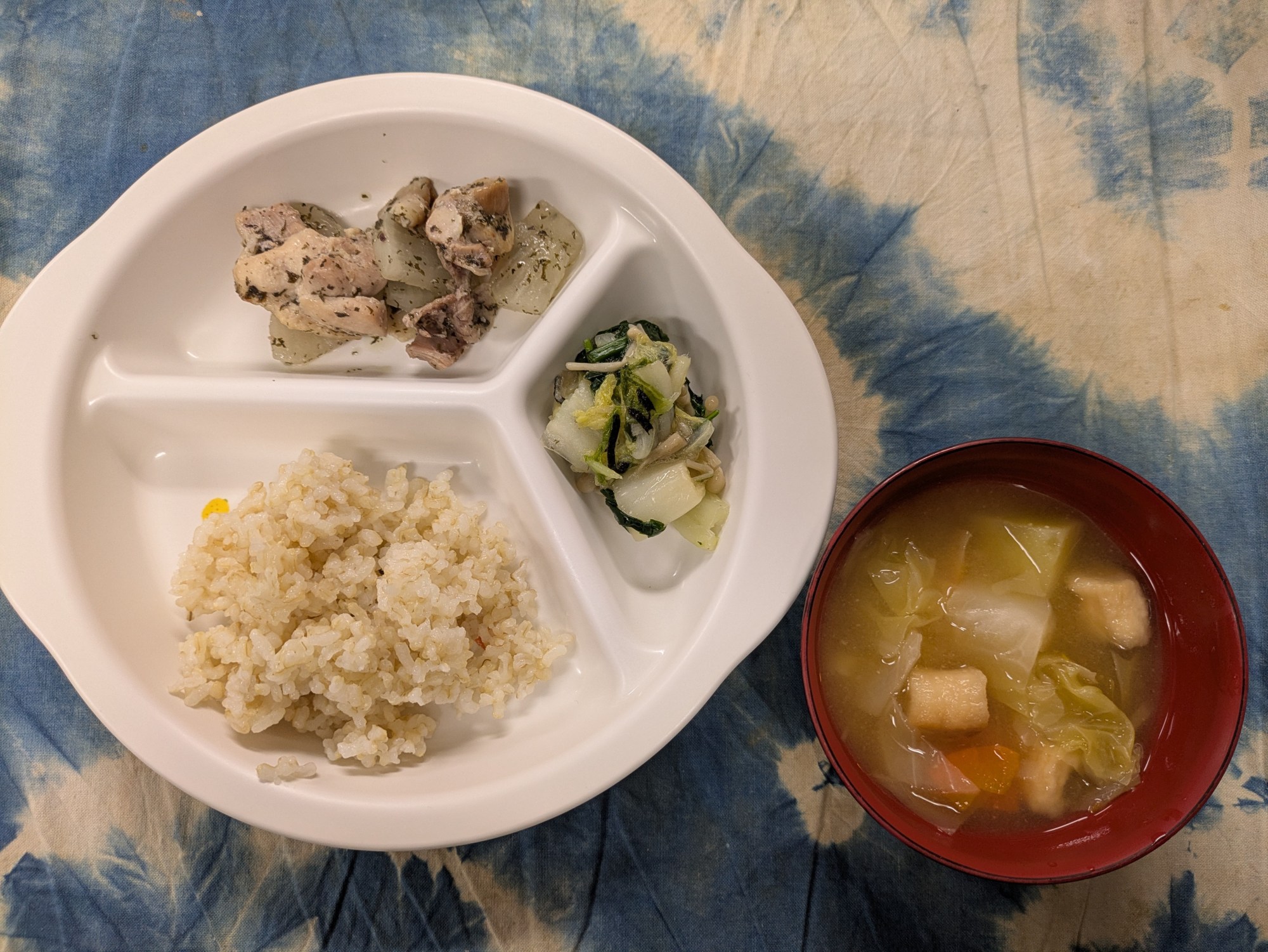 5枚目:【離乳食】鶏肉のゆかり焼き・白菜の磯和え・じゃが芋のみそ汁