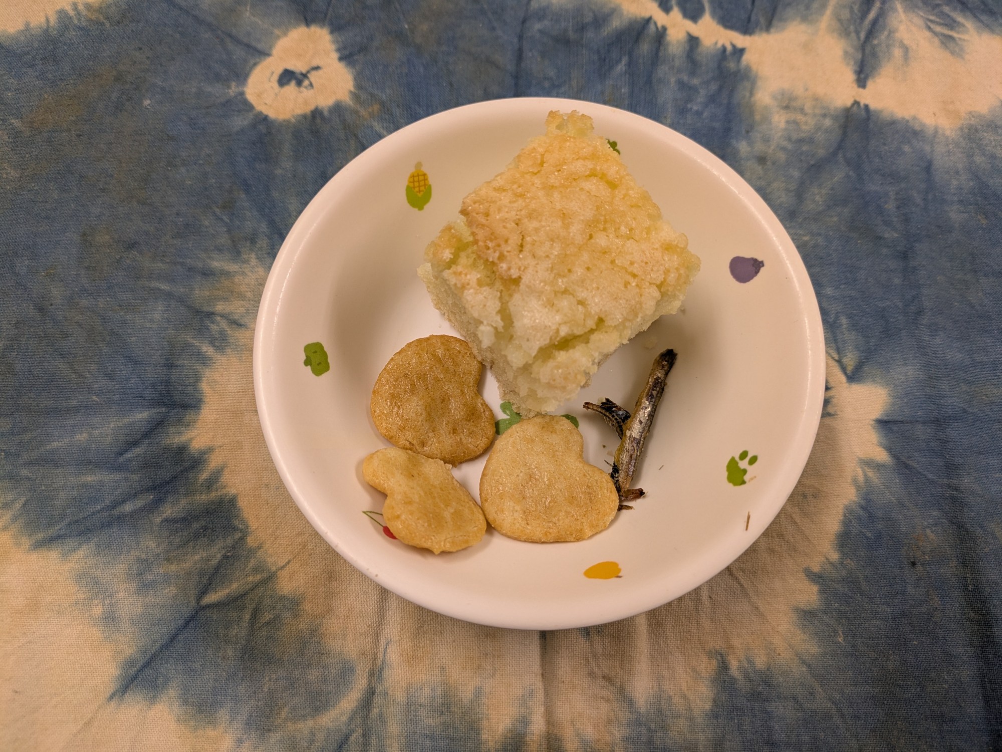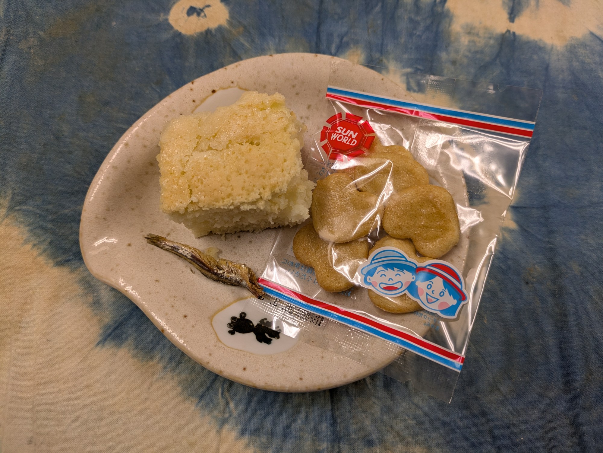2枚目:【以上児:おやつ】さくさくホットケーキ・炒りじゃこ・お菓子