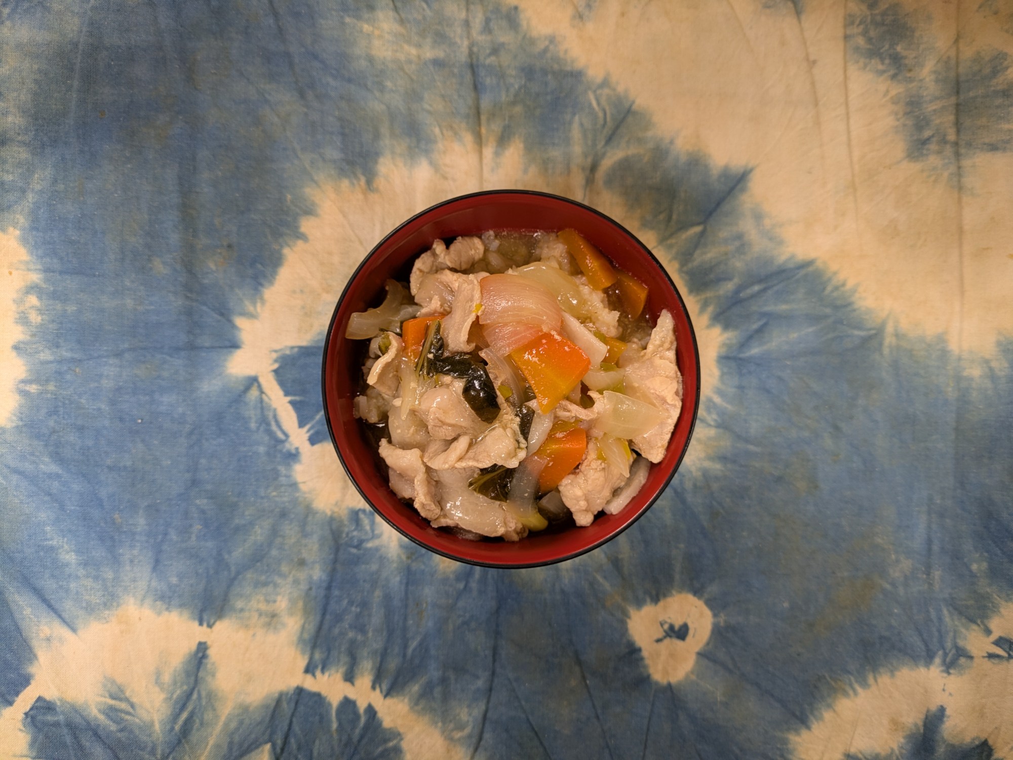 1枚目:【以上児:普通食】豚肉のみそ煮込み丼