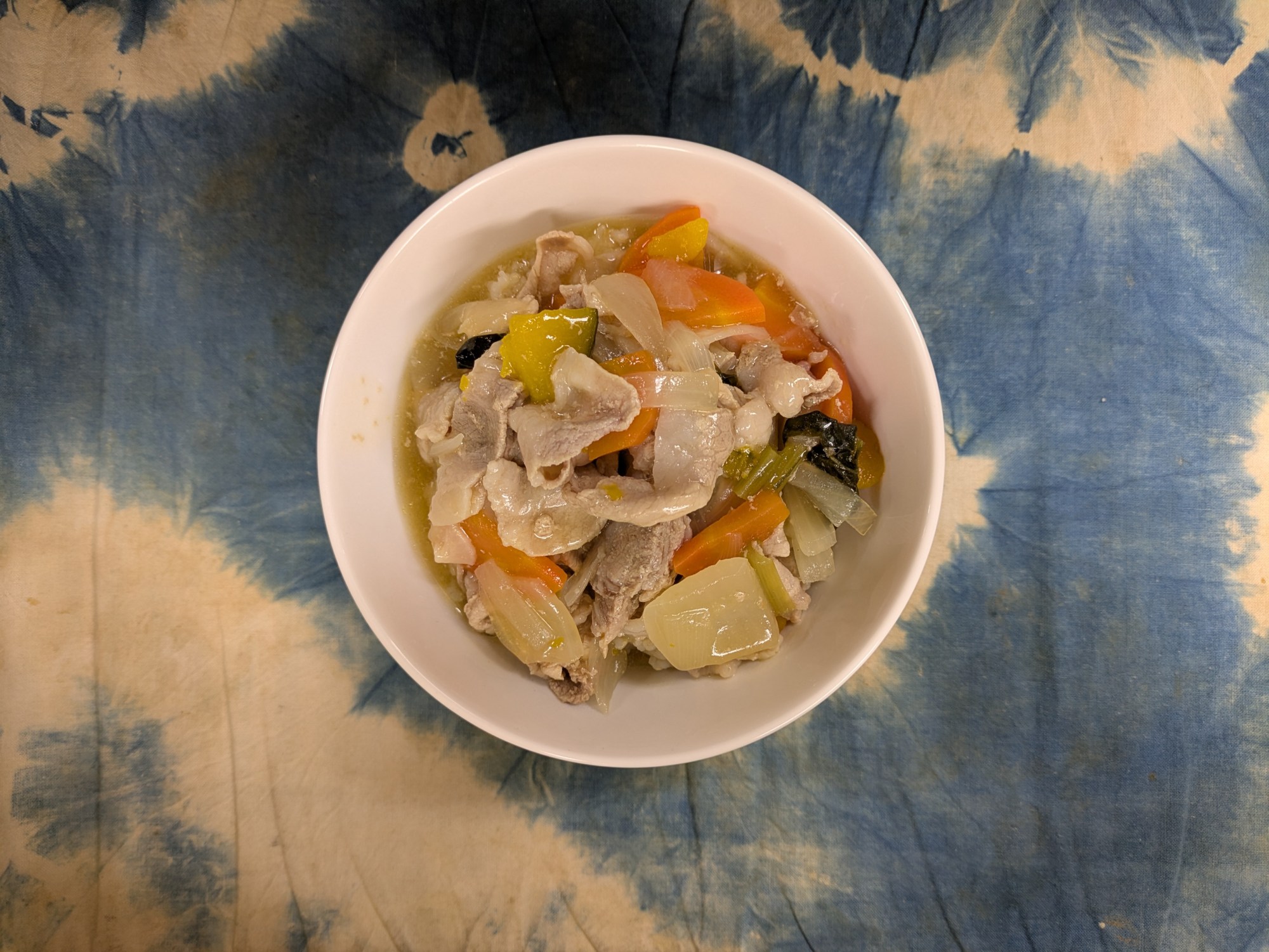 1枚目:【以上児:普通食】豚肉のみそ煮込み丼