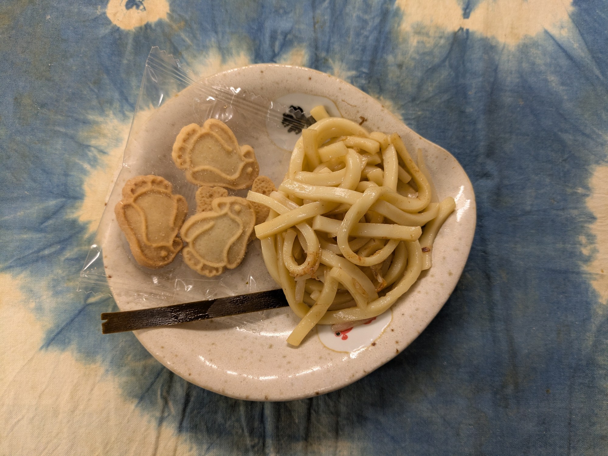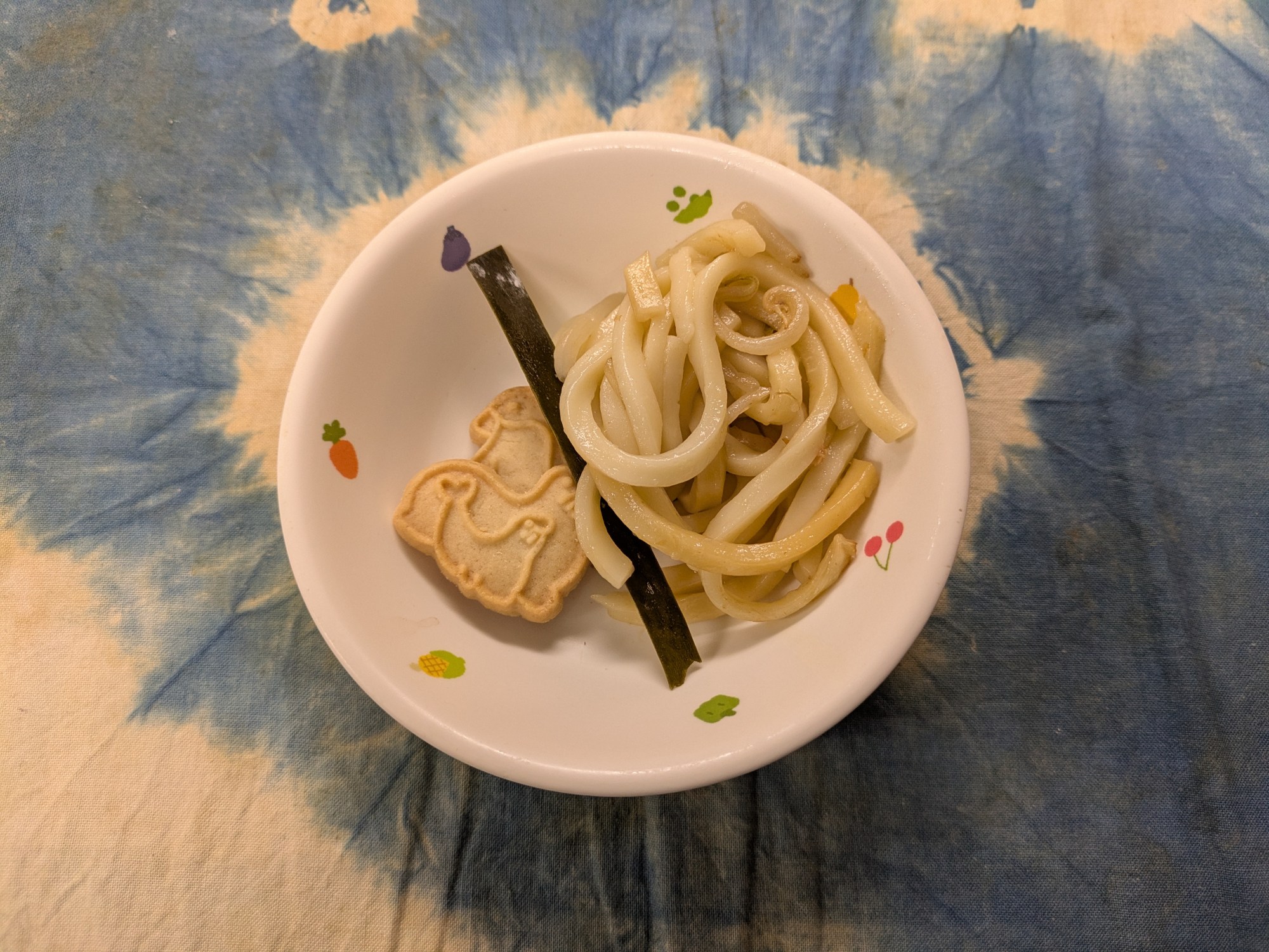 2枚目:【以上児:おやつ】焼きうどん・酢こんぶ・お菓子