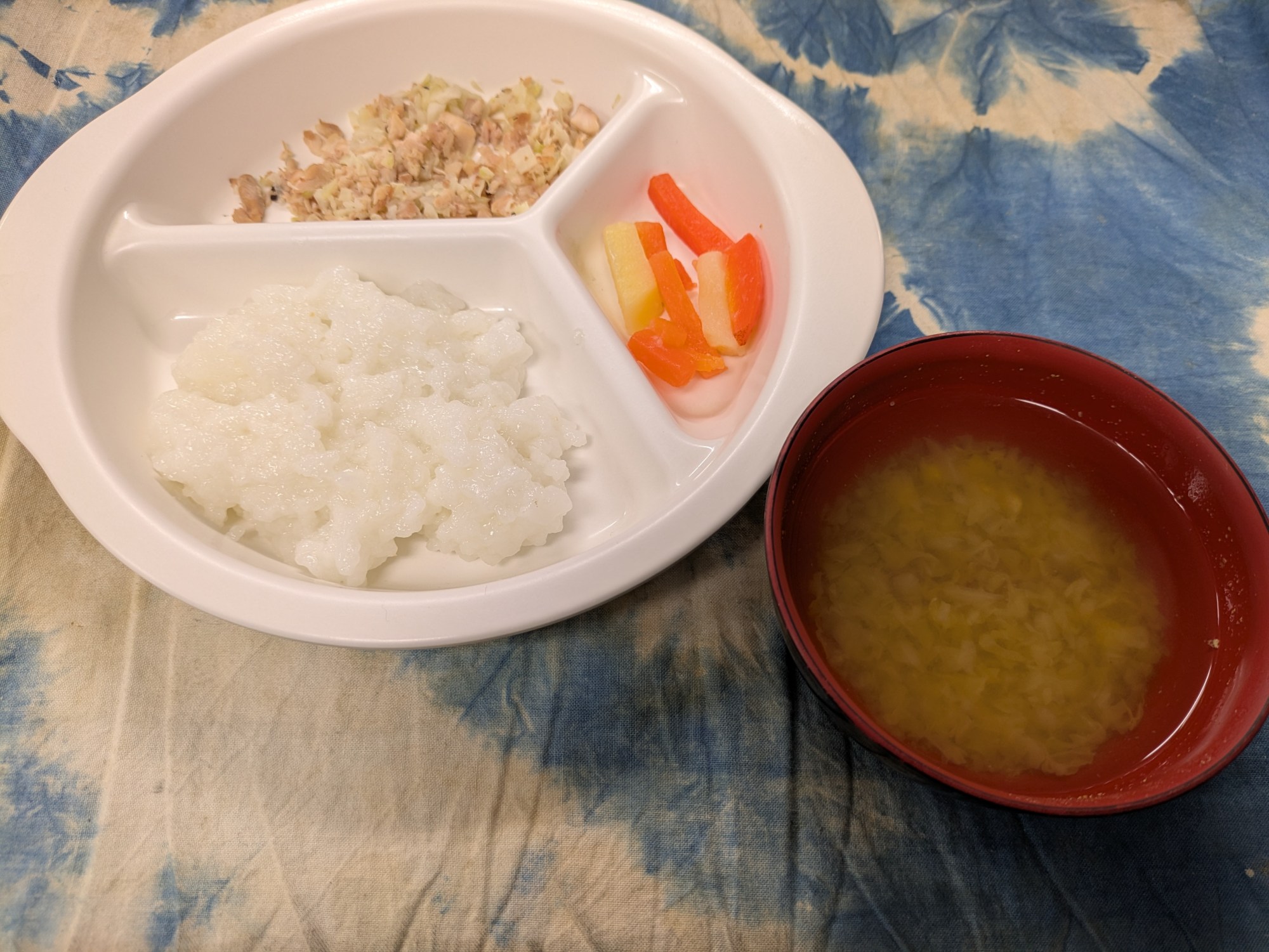 5枚目:【離乳食】鶏肉のゆかり焼き・人参の和え物・みそ汁