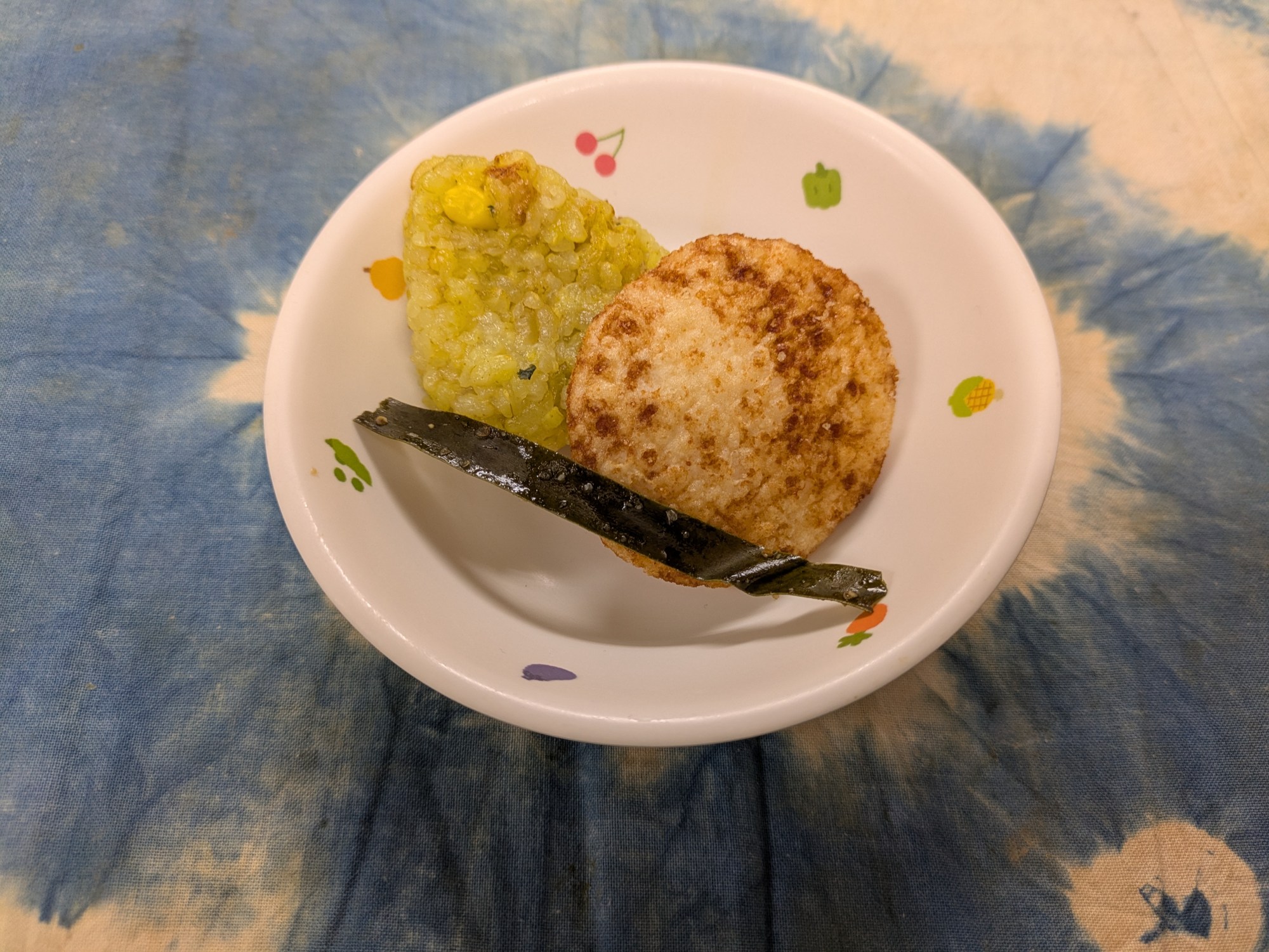 2枚目:【以上児:おやつ】カレーピラフ・ごまこんぶ・お菓子