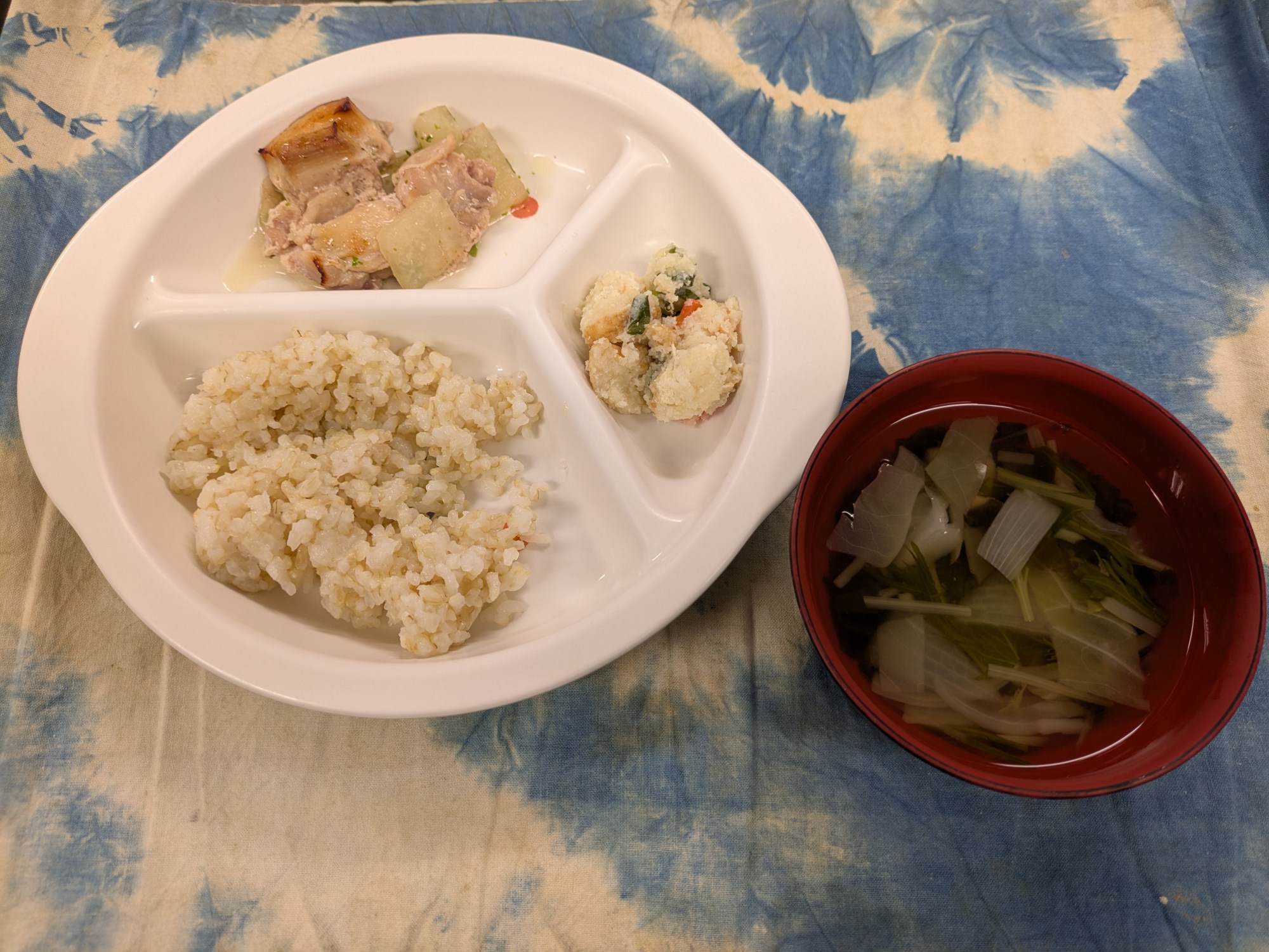 1枚目:【以上児:普通食】鶏肉の青のり焼き・卯の花の炒り煮・昆布のお吸い物