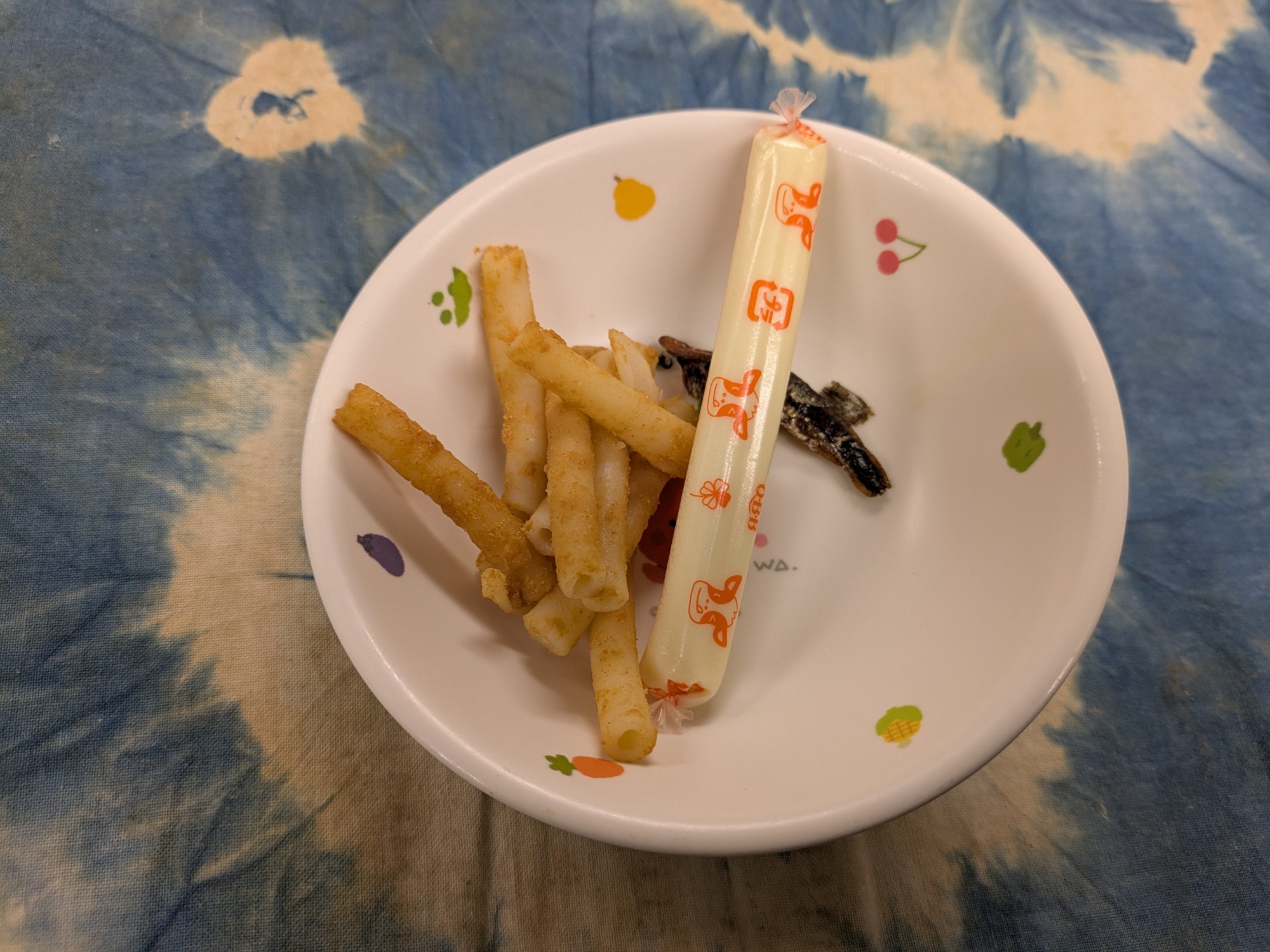 4枚目:【未満児:おやつ】マカロニのきな粉和え・甘辛じゃこ・チーズ