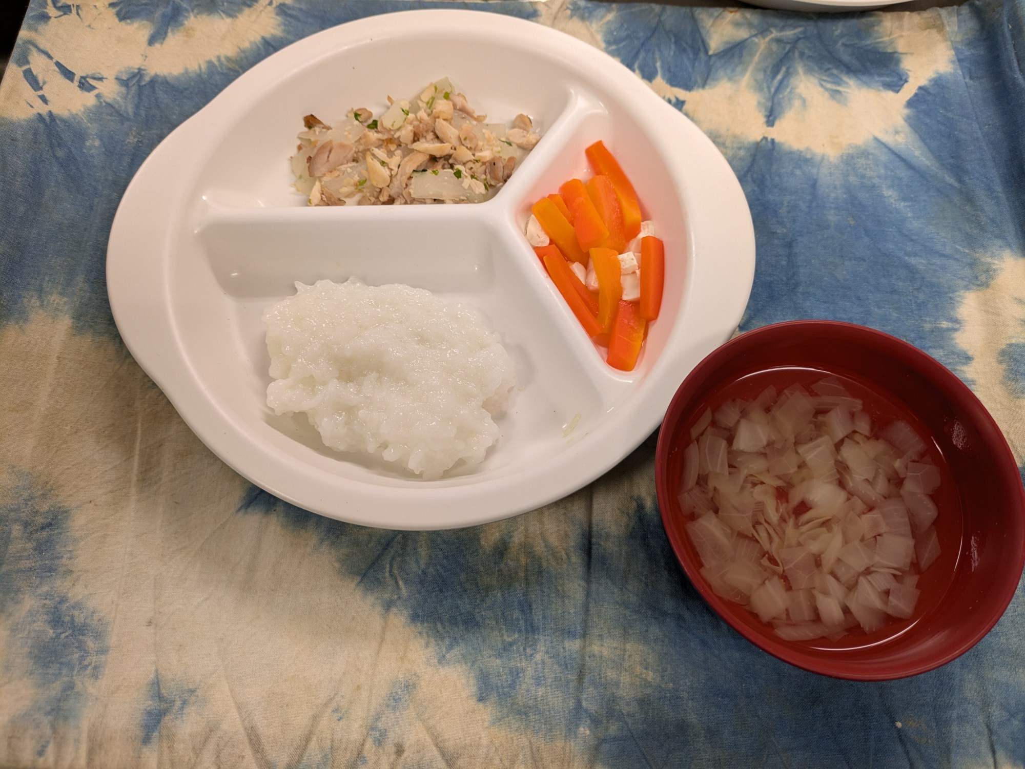 5枚目:【離乳食】鶏肉の青のり焼き・豆腐の炒り煮・玉葱のお吸い物