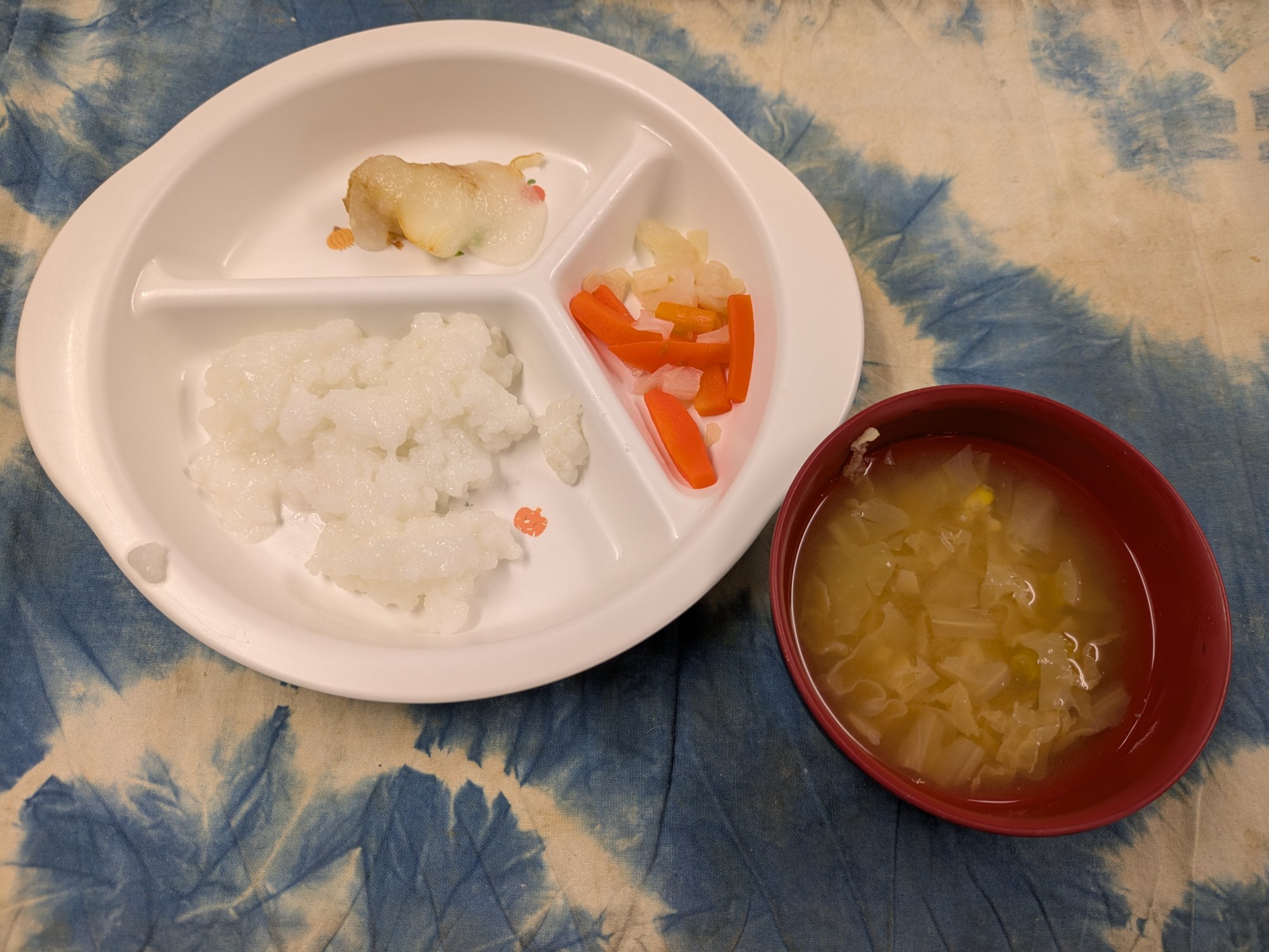 5枚目:【離乳食】カレイのおろしあんかけ・キャベツの塩和え・白菜のみそ汁